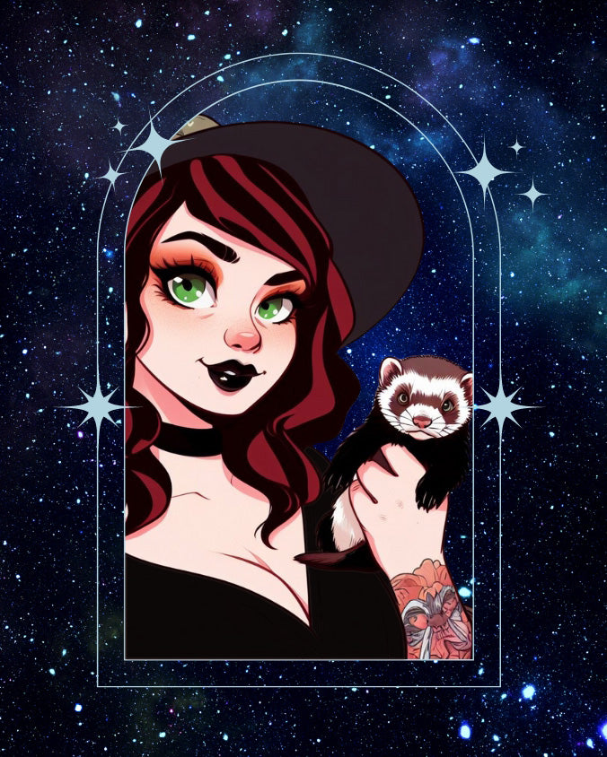Thanks so much for visiting! This shop is owned and operated by a weird, queer woman that is supported by love of her life, Ben and her adorable ferret family.