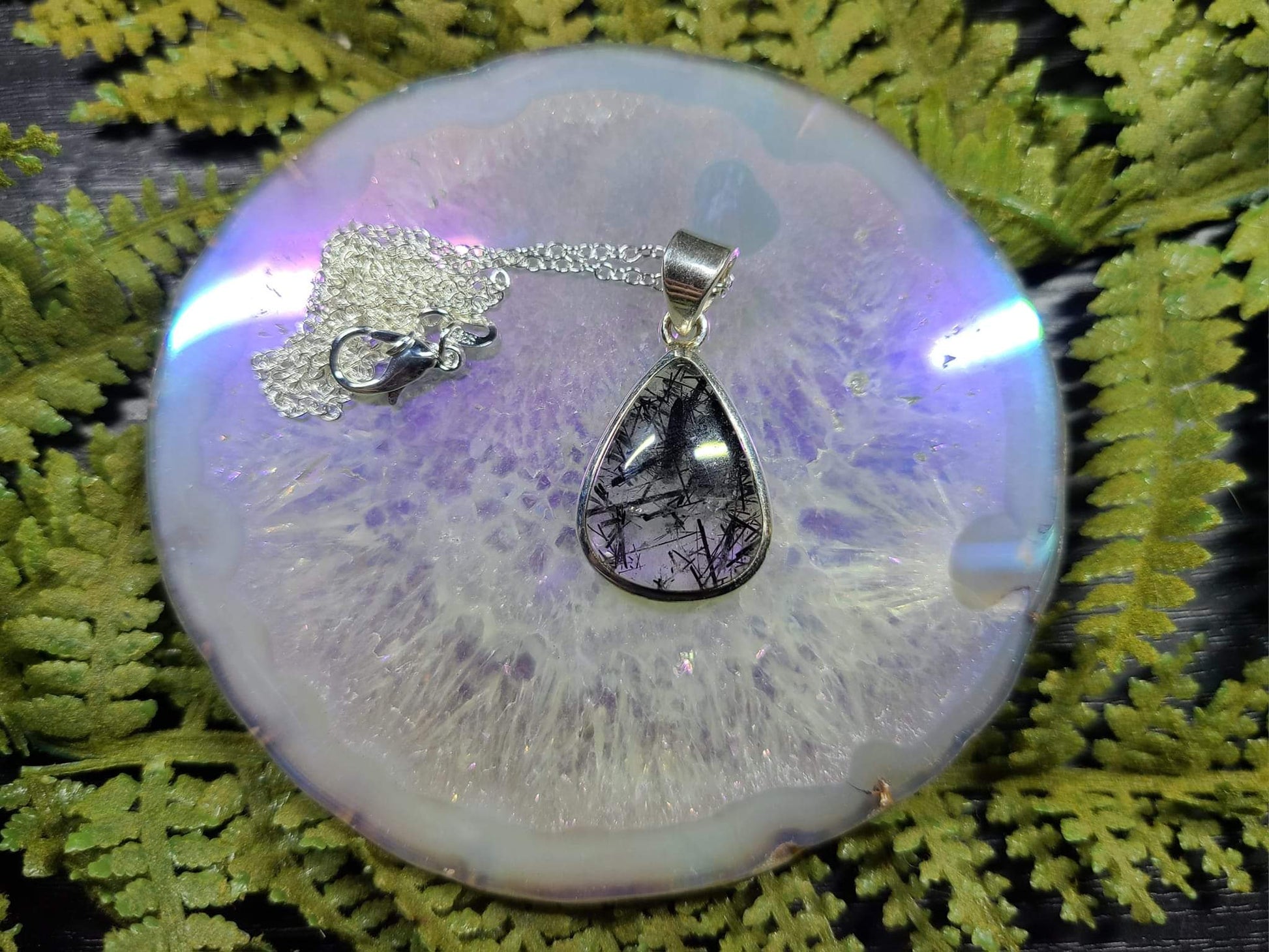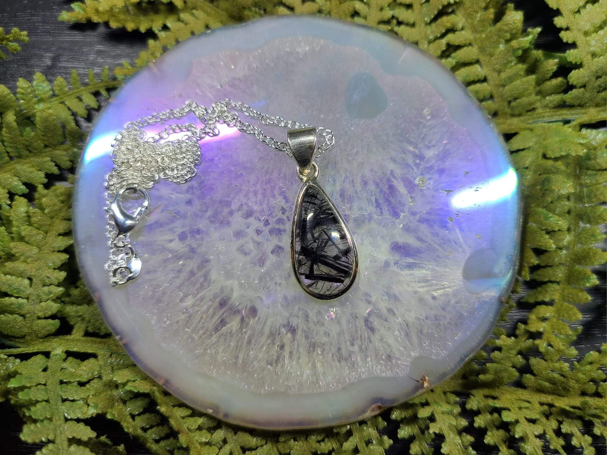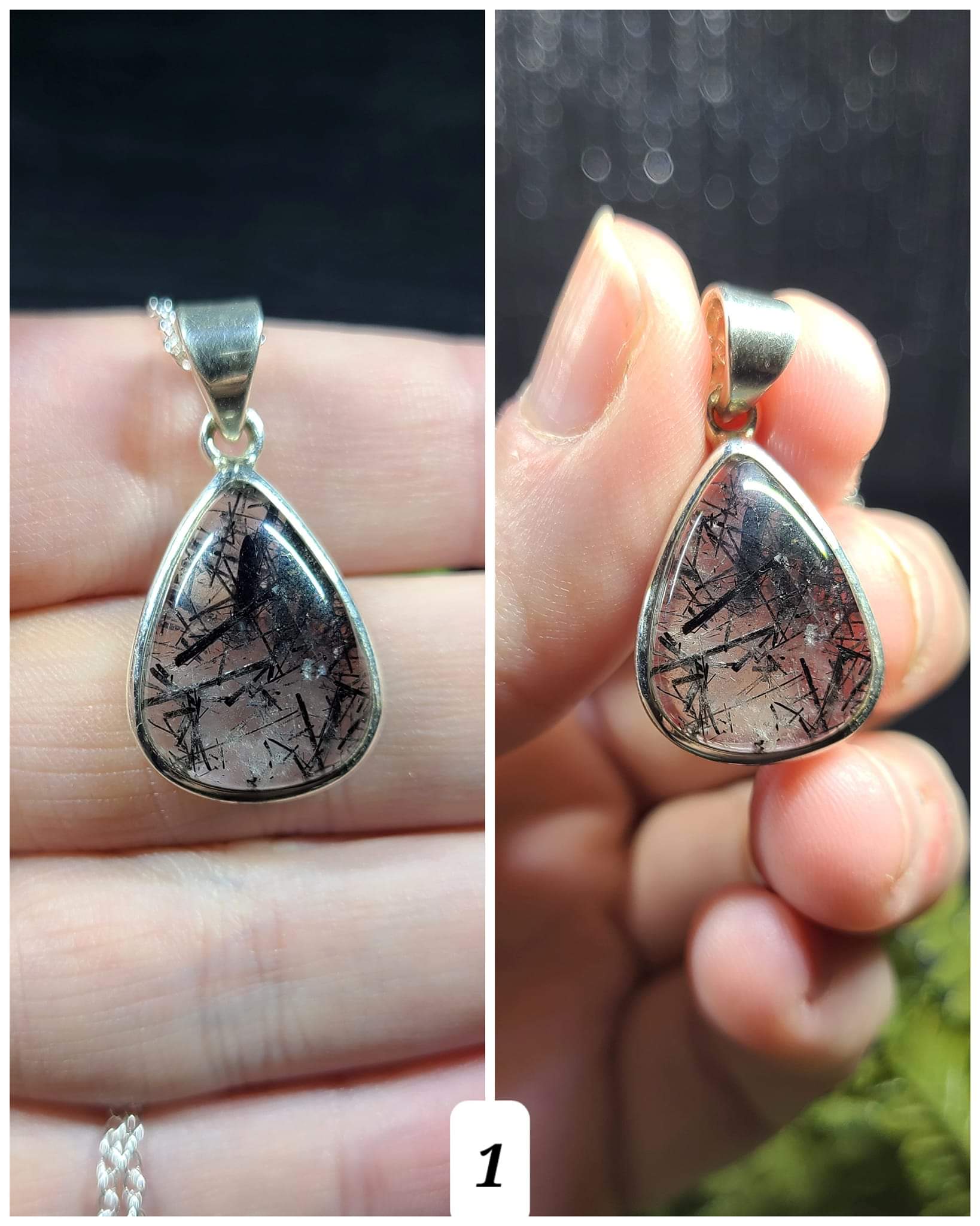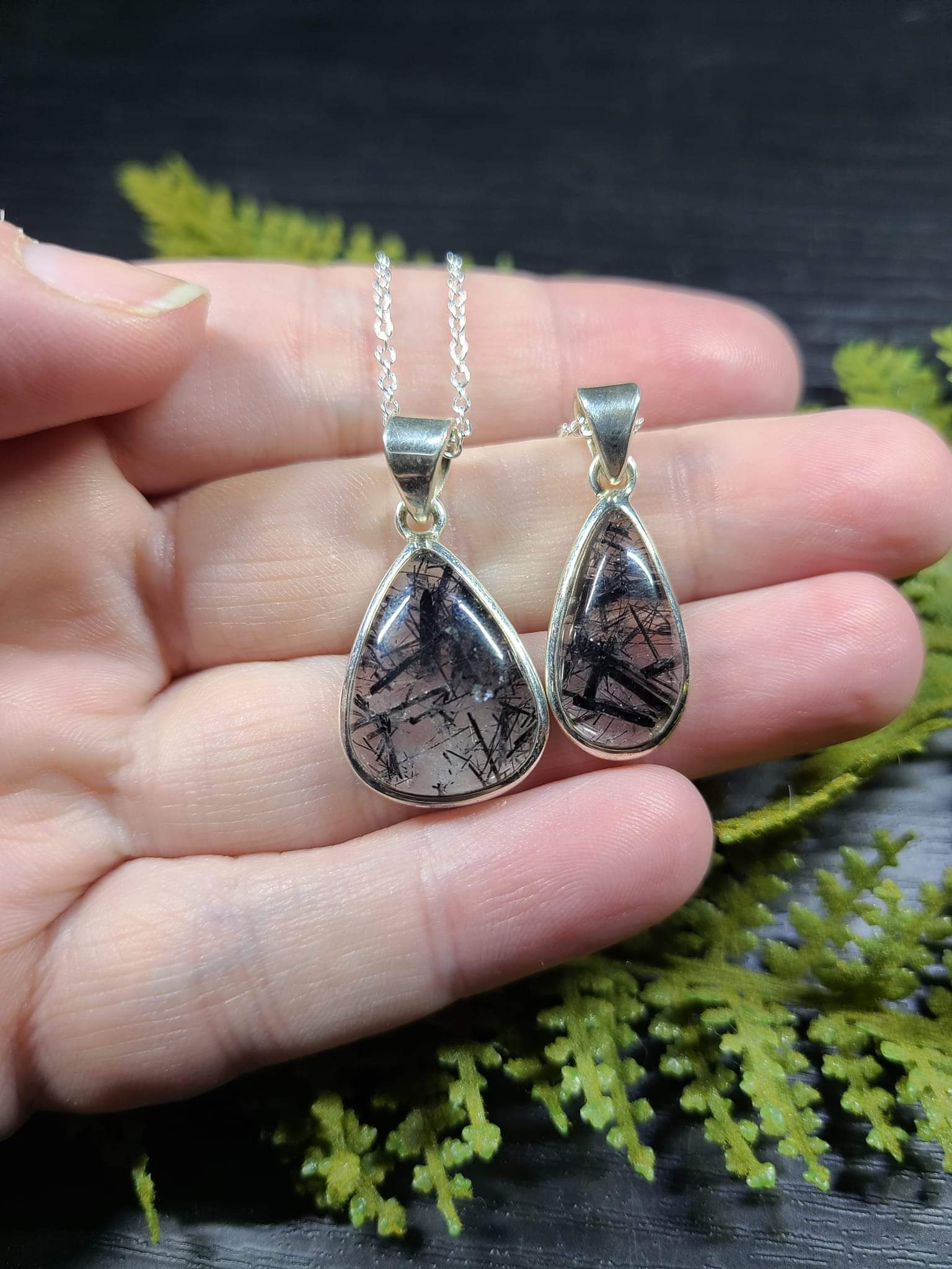 Black Tourmaline in Quartz Teardrop - Sterling Silver Necklaces