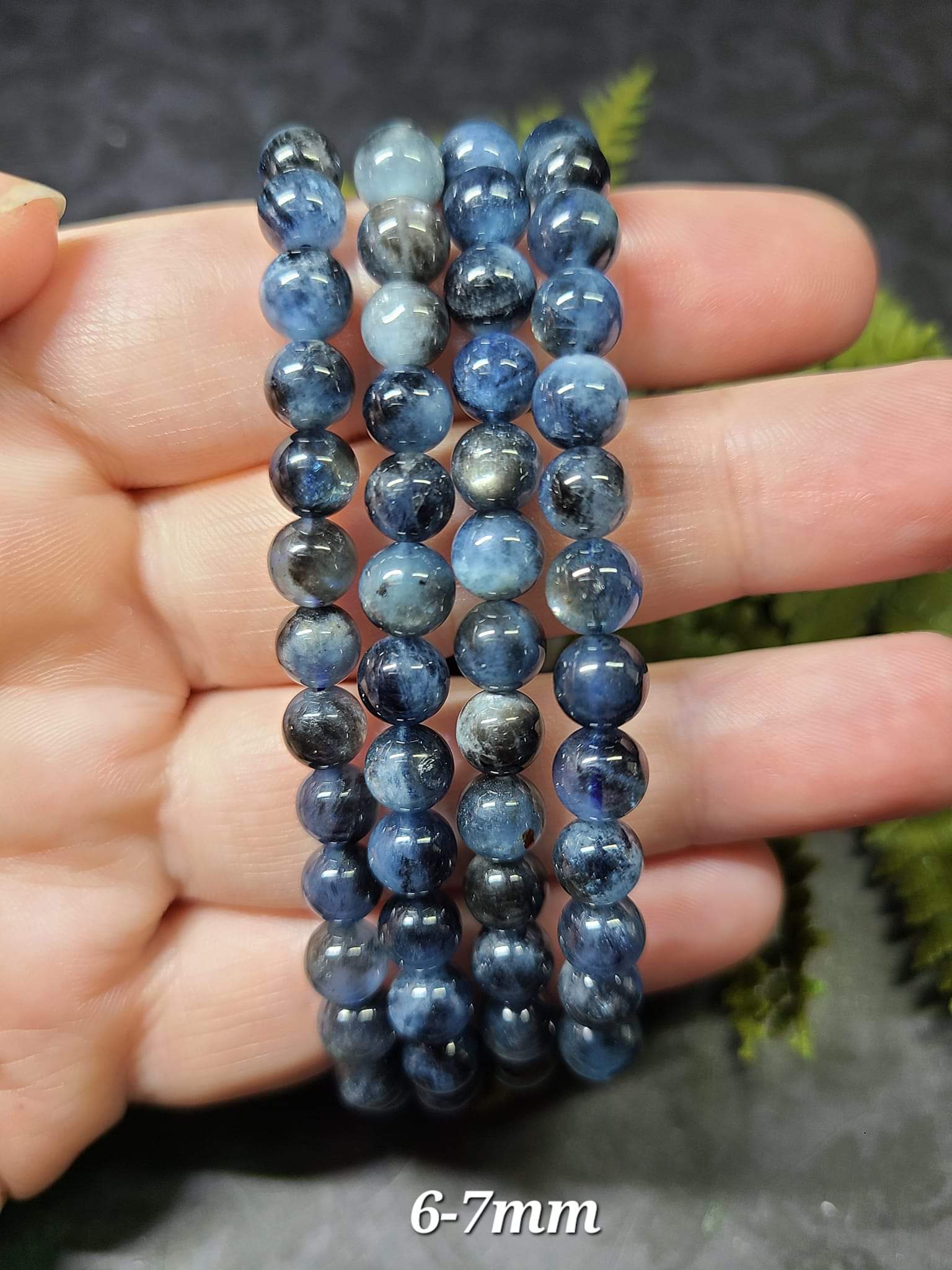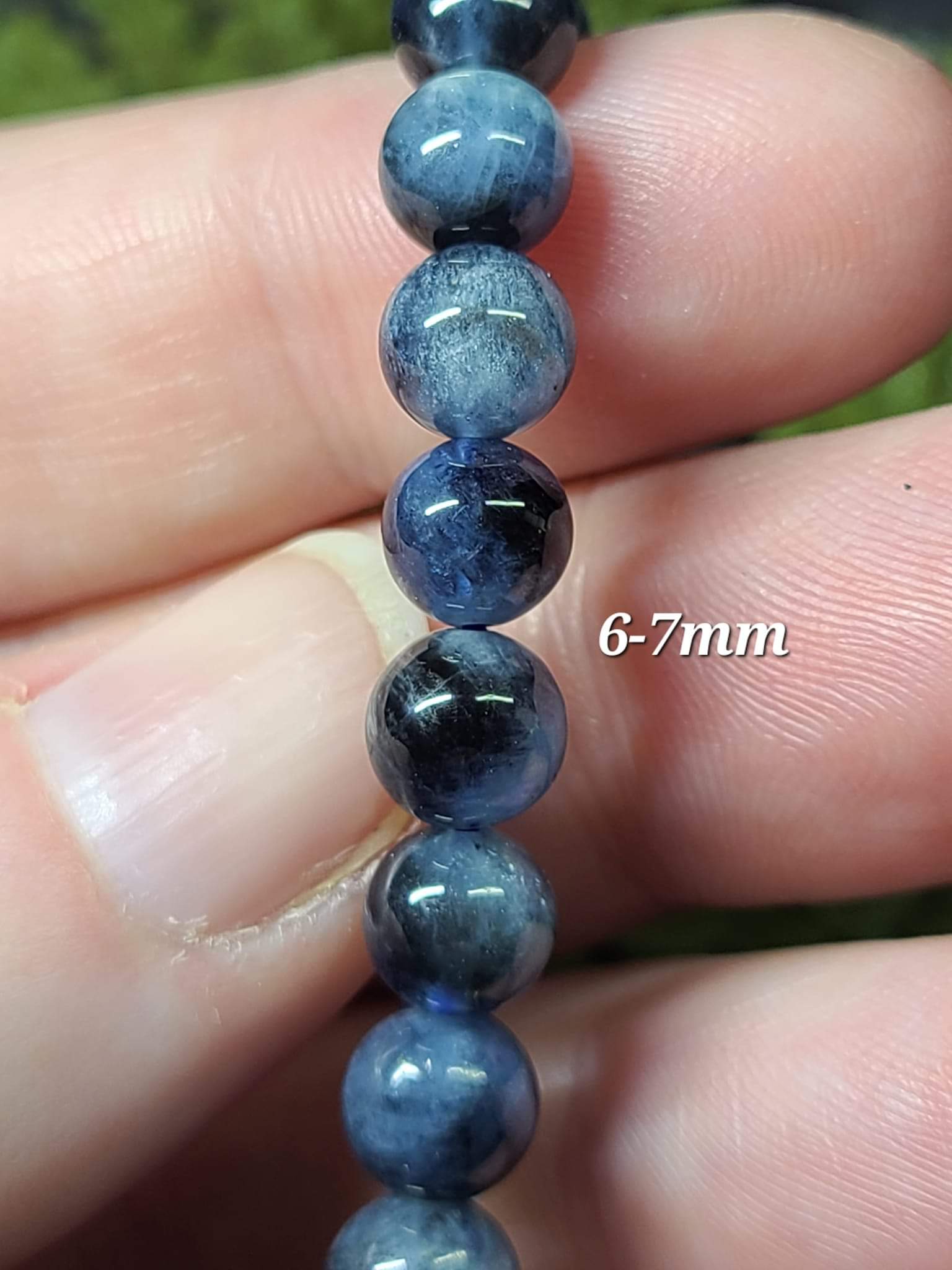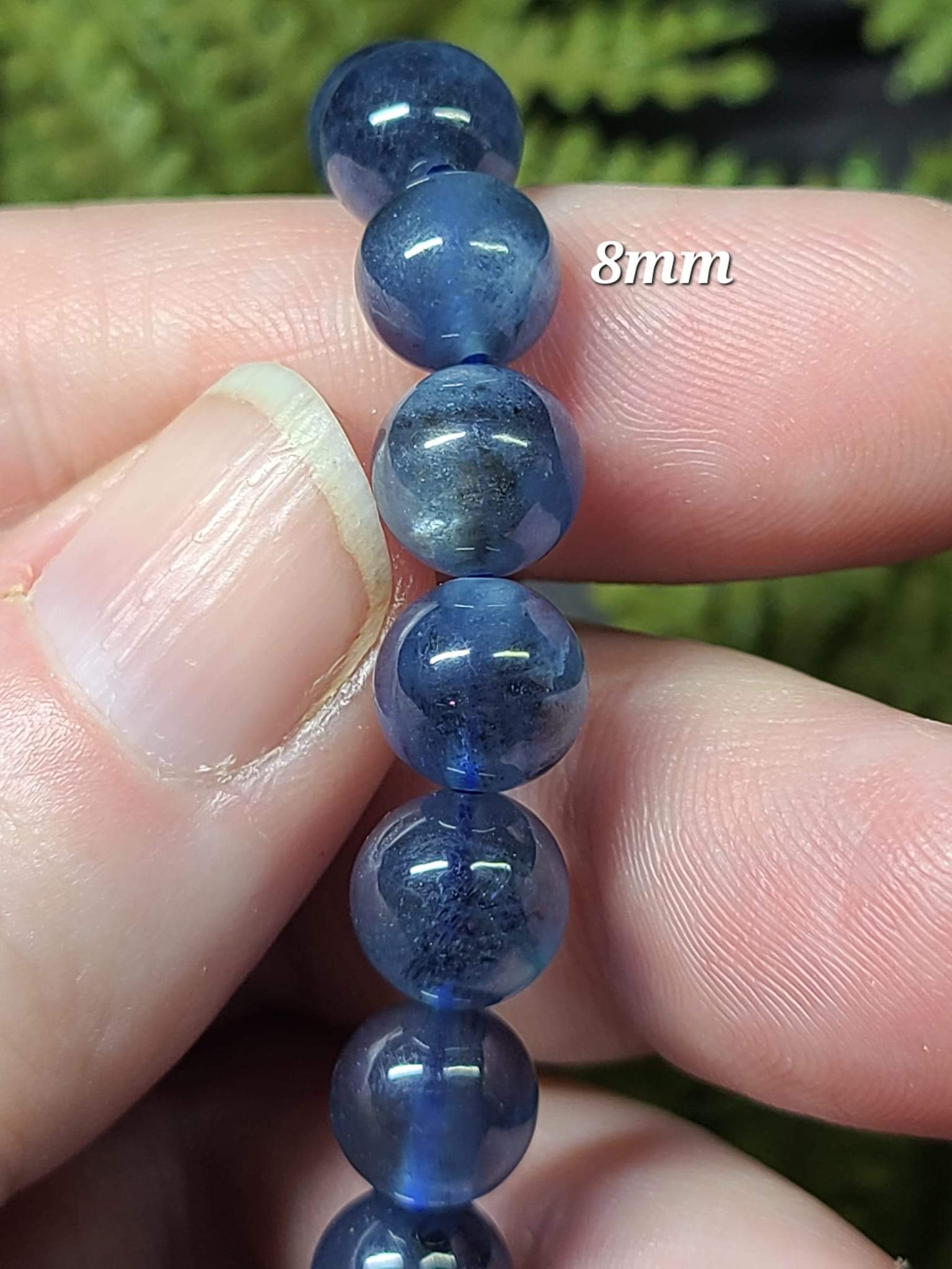 Sizing: These are all approx 8mm beads on blue stretch cord. The cord for these are relatively stiff, measuring approx 7.5" unstretched and up to 8". You can always restring these on a looser cord if you'd like!