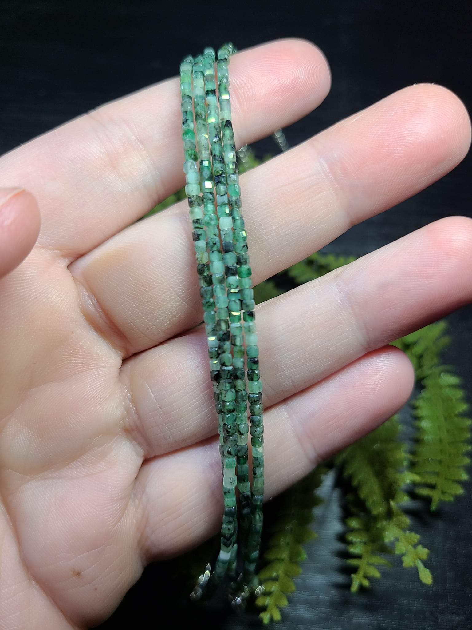 These are genuine emeralds in cube facet cuts, all on an adjustable bracelet! These dainty bracelets are incredibly comfortable to wear,