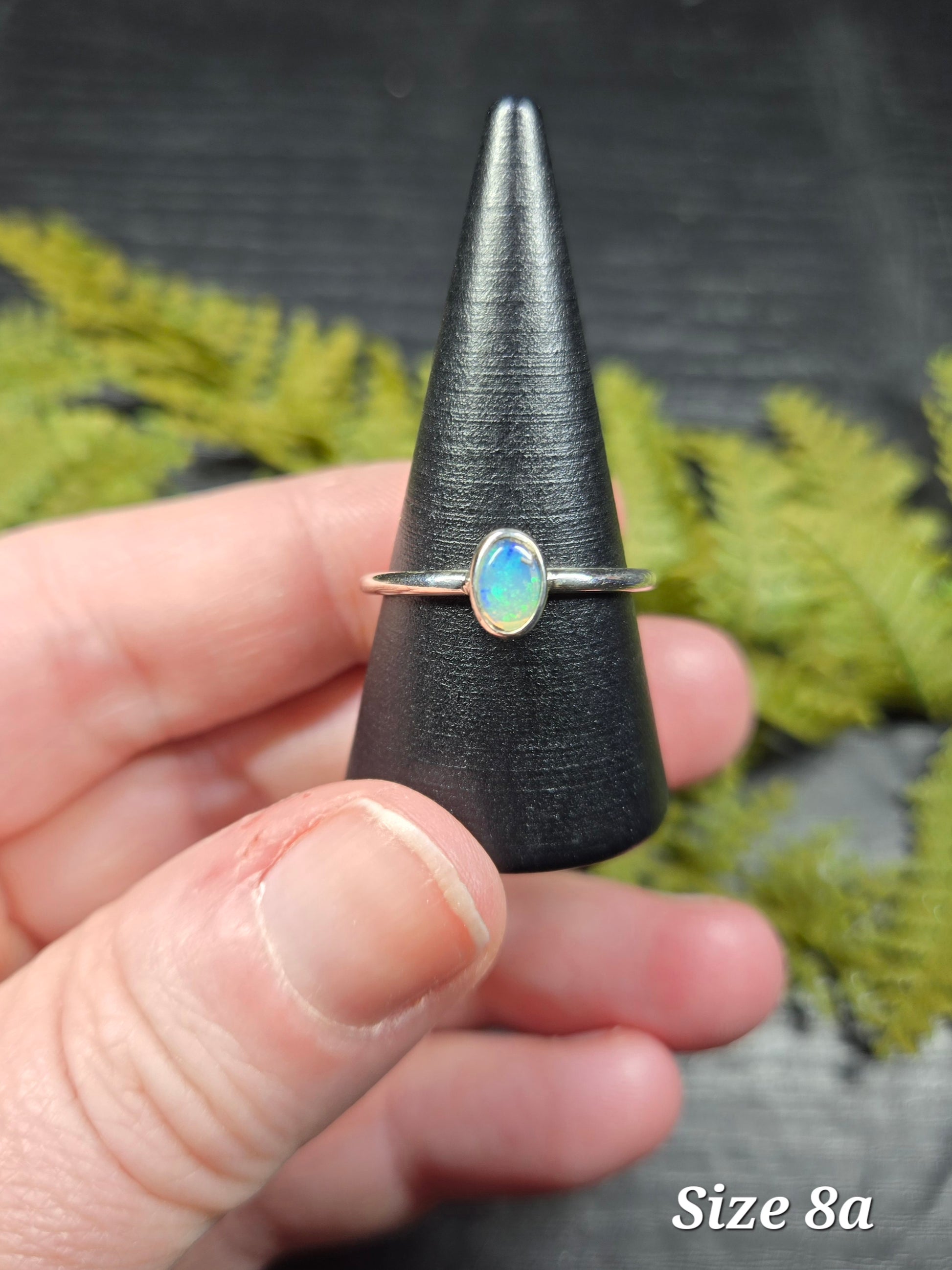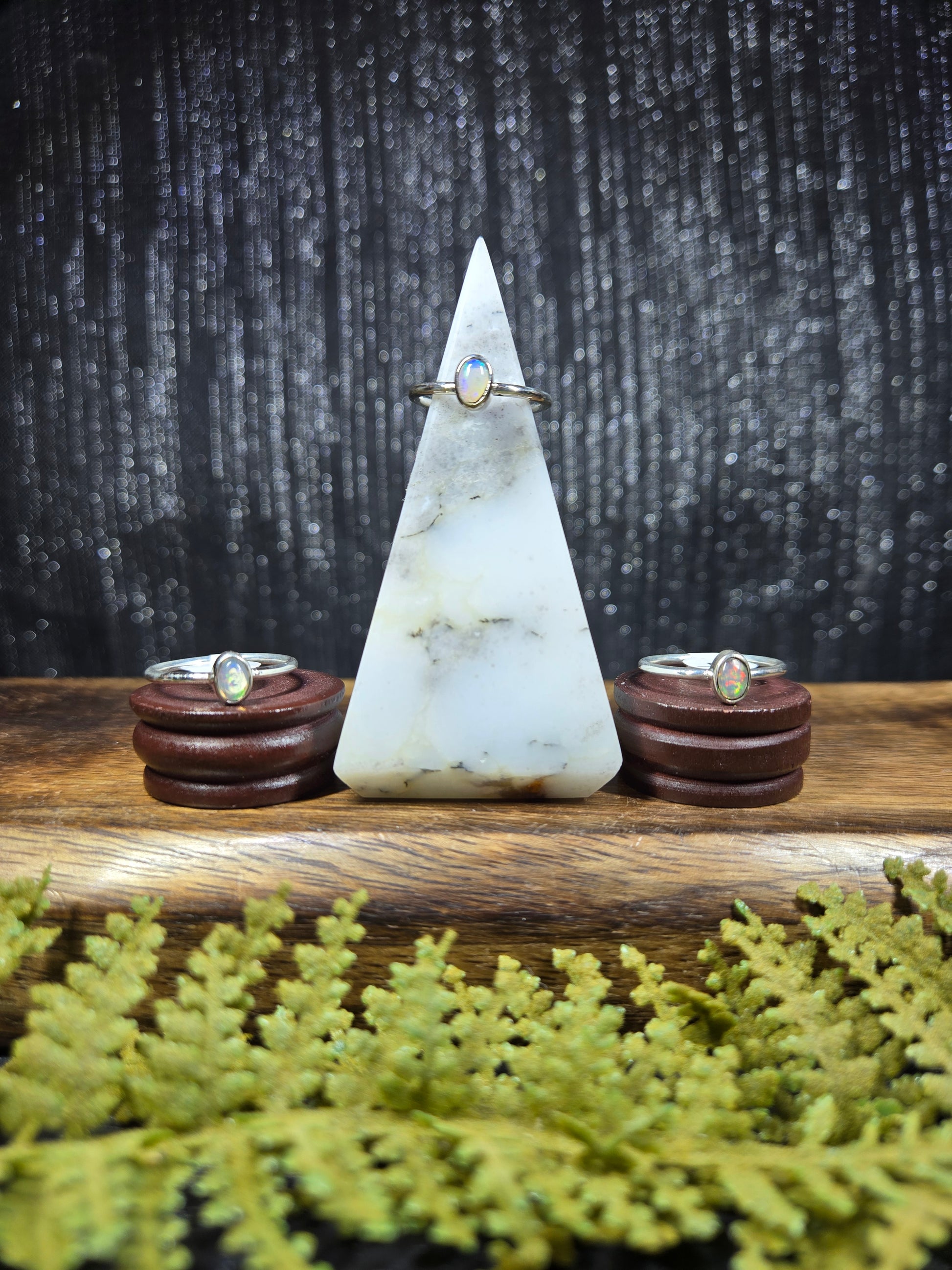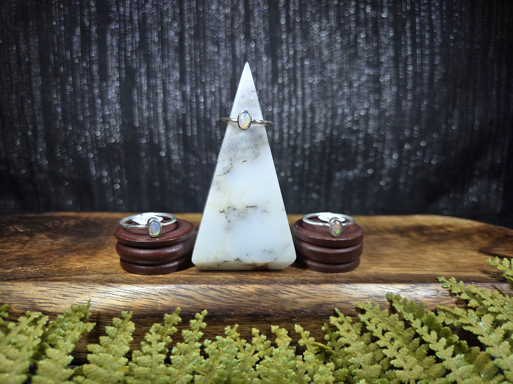 NOTE: These are solid sterling silver, sized rings. Do not wear these in pools or saltwater. I do also recommend to take them off for baths and showers as opal is a sensitive stone!