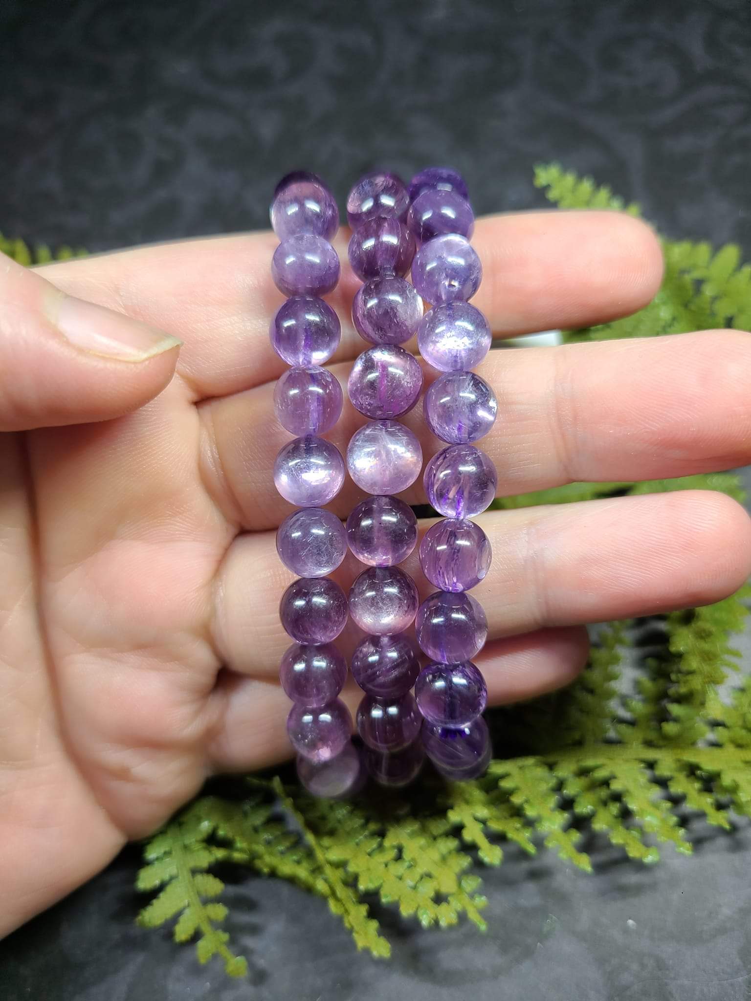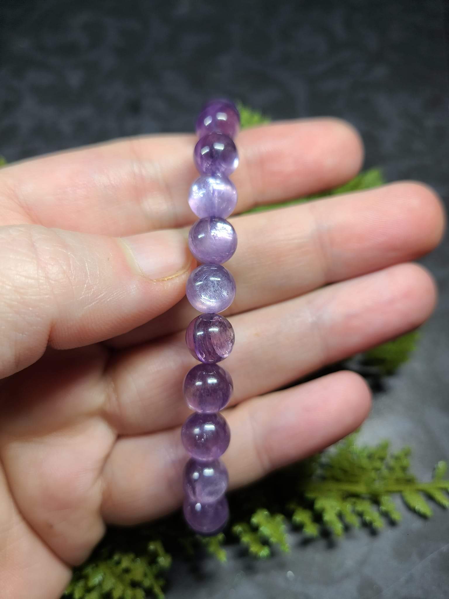 These are the highest quality lepidolite you can get that isn't museum grade. Included below is a picture of what this kind of lepidolite is made from. Lepidolite "Books" or tabs of lepidolite (purple mica) are stacked and then expertly formed into high polished beads. As you can imagine, this takes a TON of material, a ton of time and a ridiculous amount of expertise. This makes these bracelets very uncommon and hard to find.