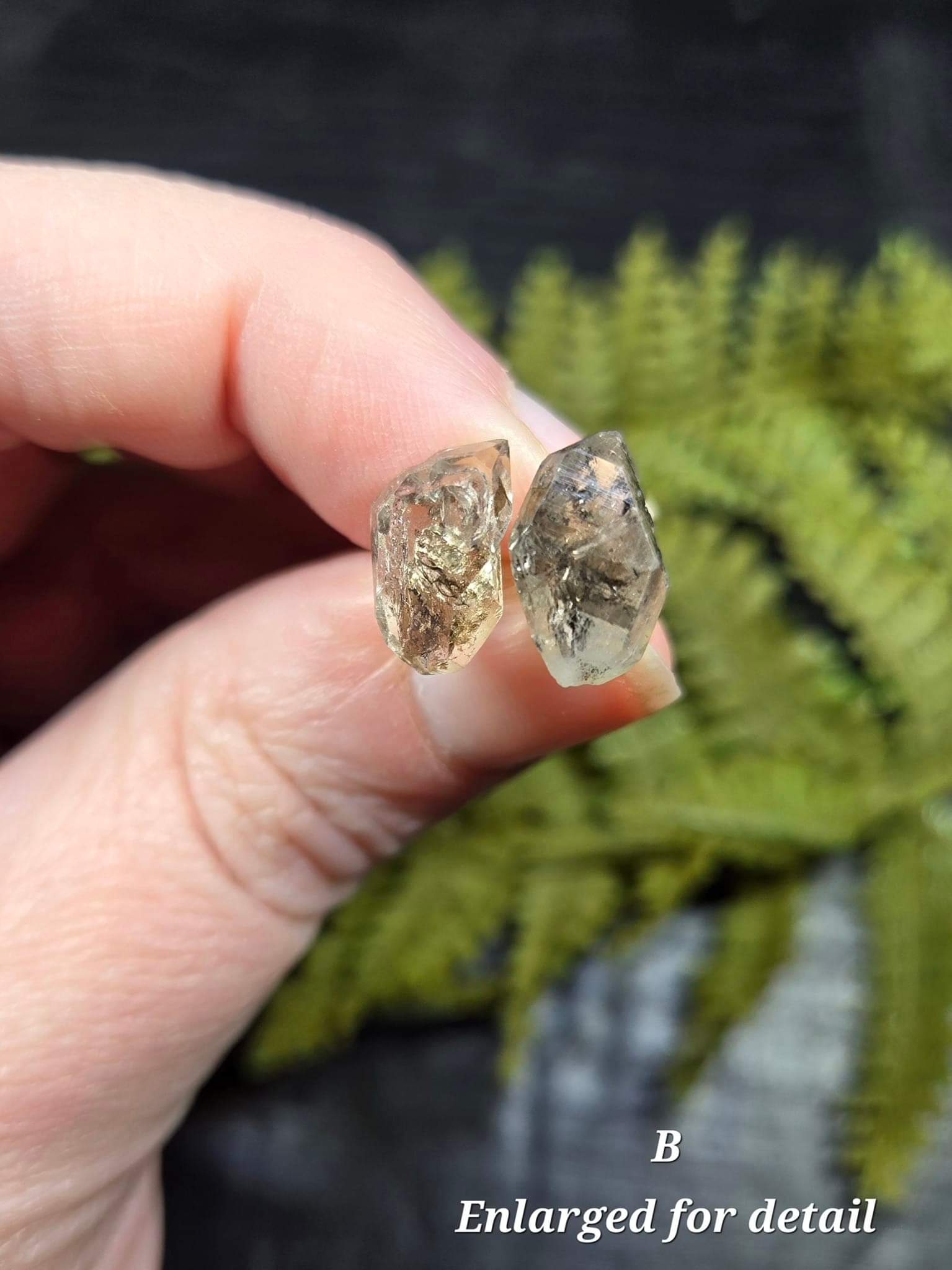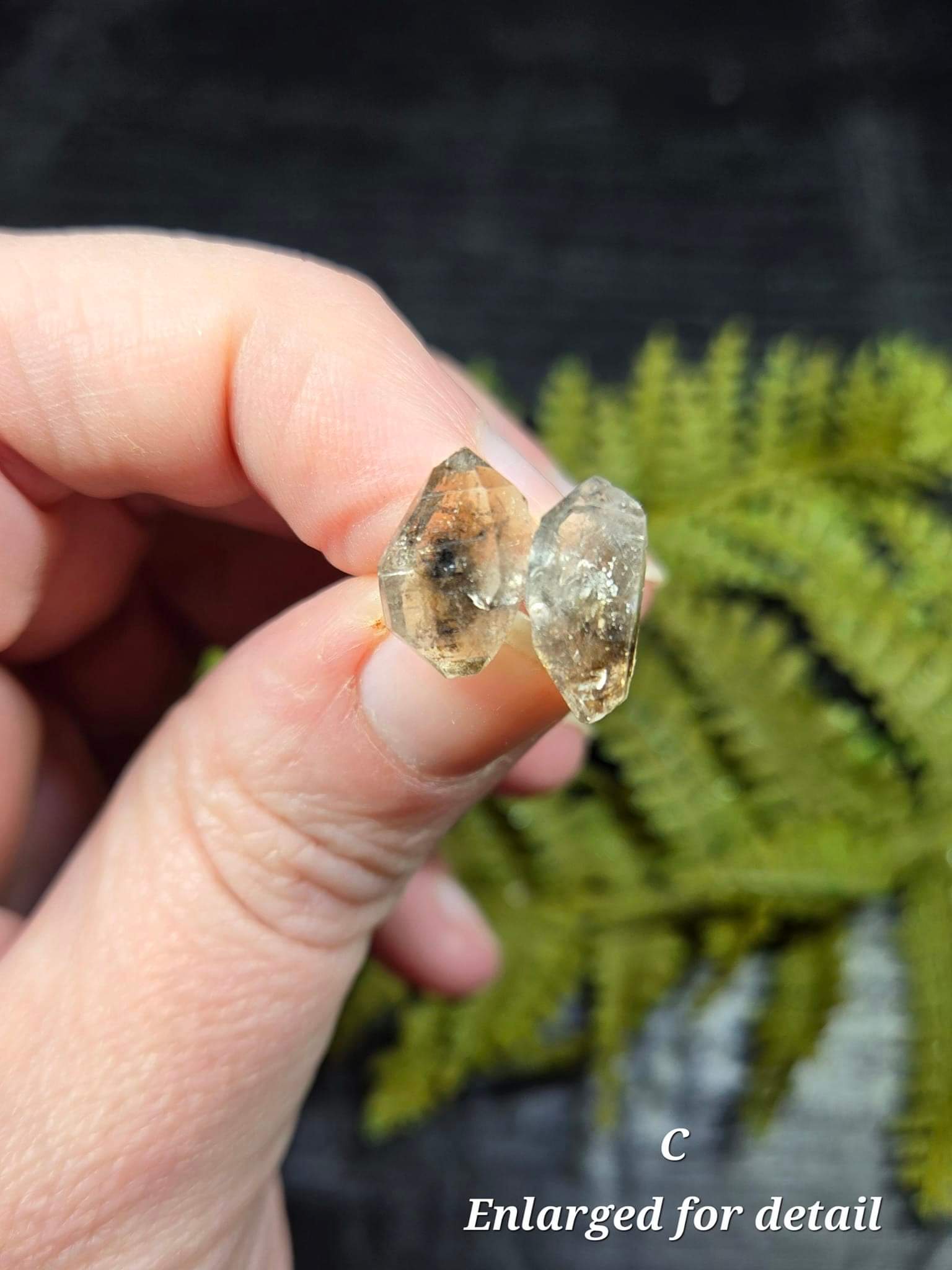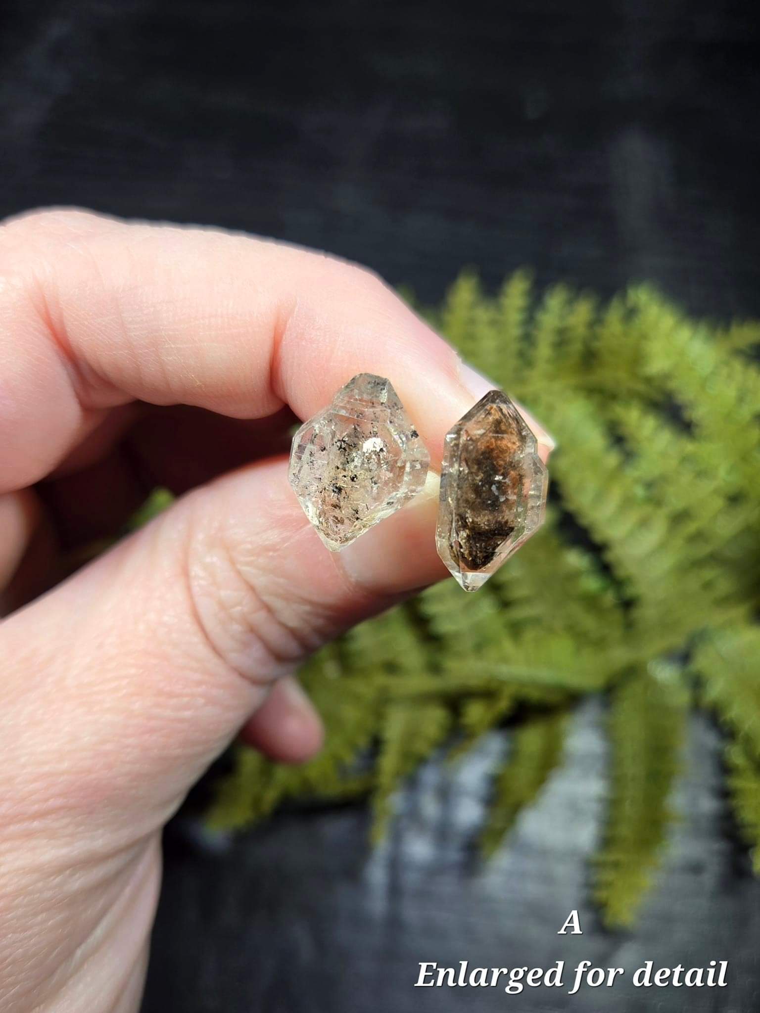 Known as the gemstone of high vibrational light, the Herkimer Diamond is a variety of Clear Quartz. Each naturally shaped herk is naturally loaded with carbon inclusions, making these salt and pepper Herkimers. With carbon inclusions like these, you have a grounding connection to your ancestors, and a way to carry a piece of history around with you!