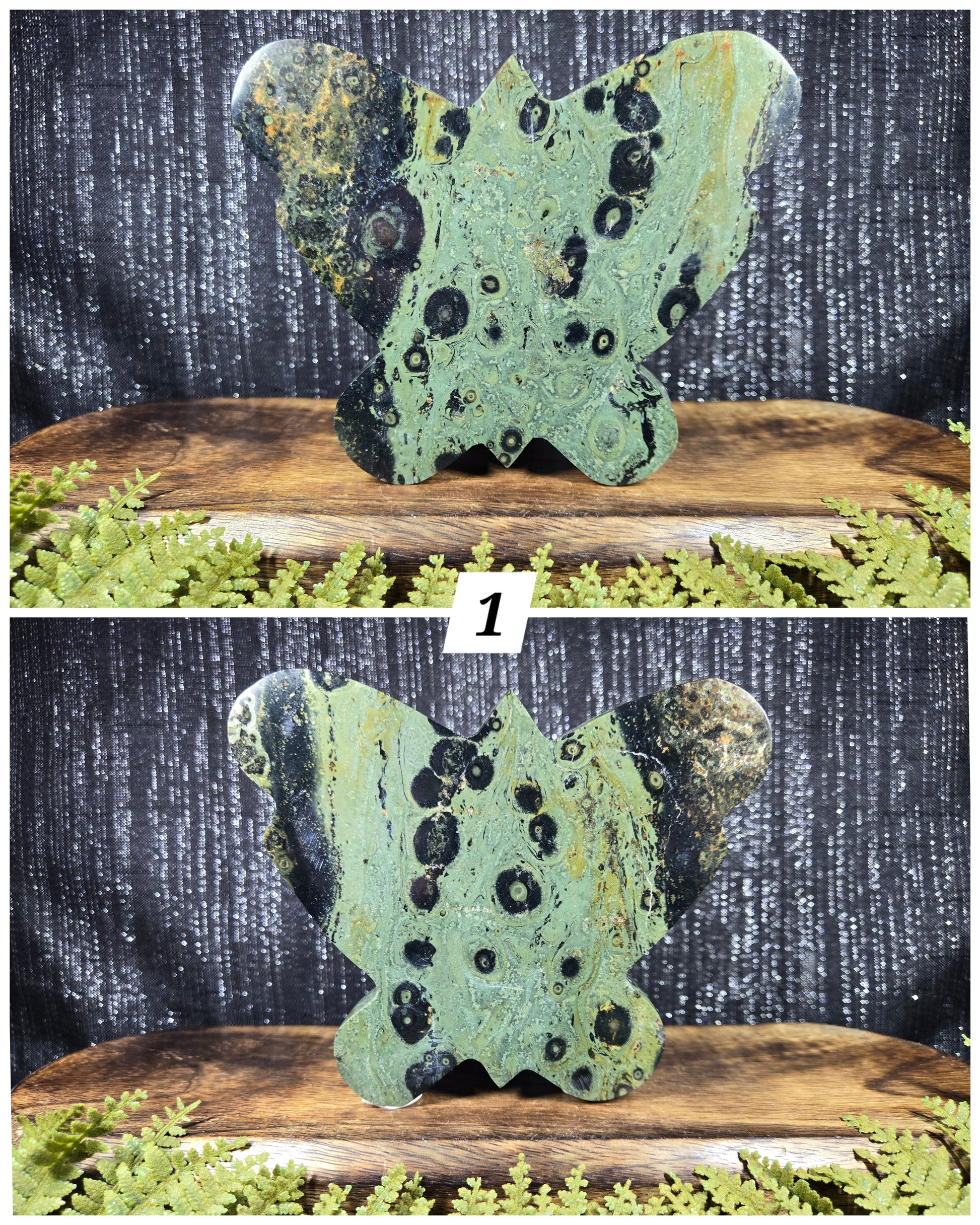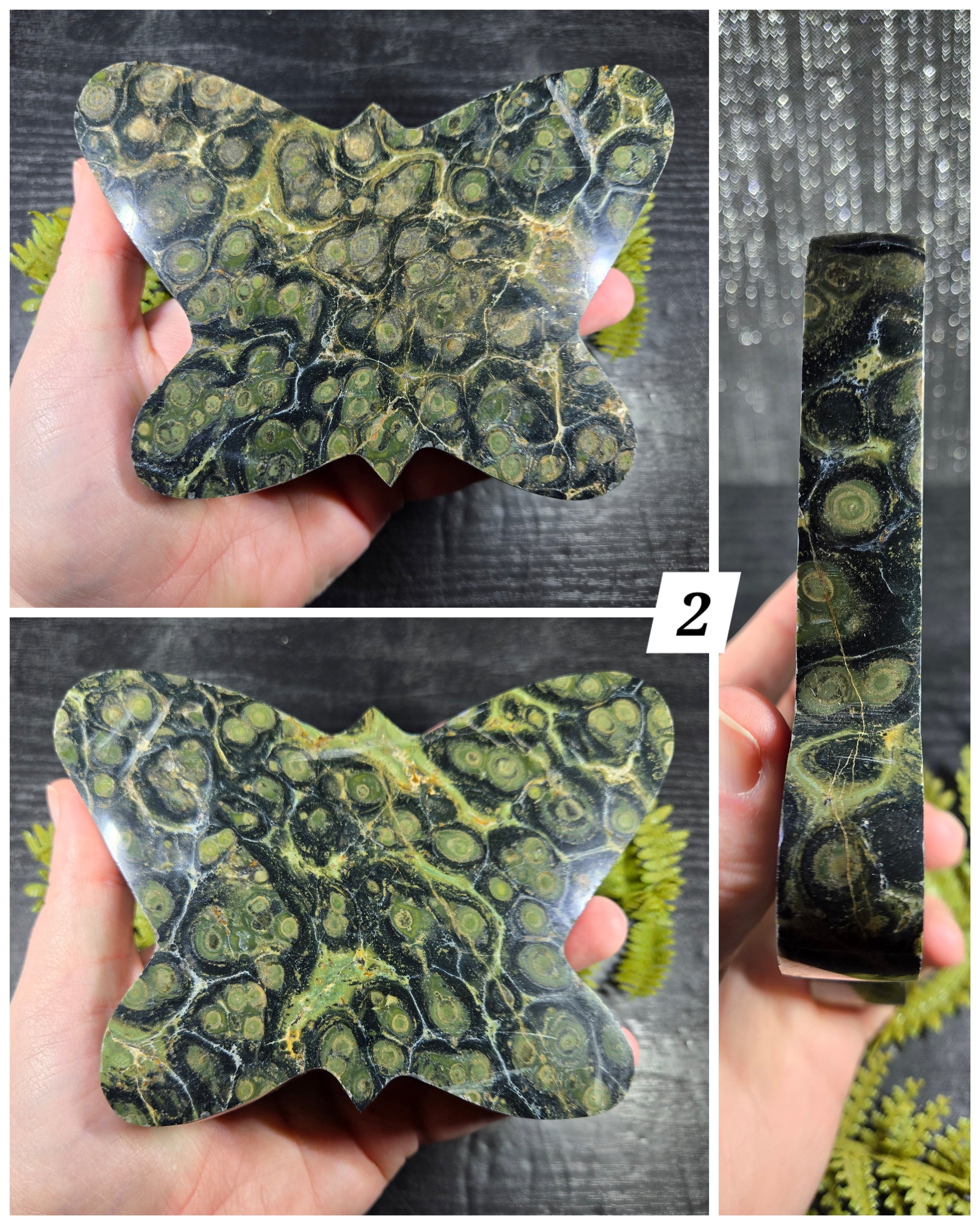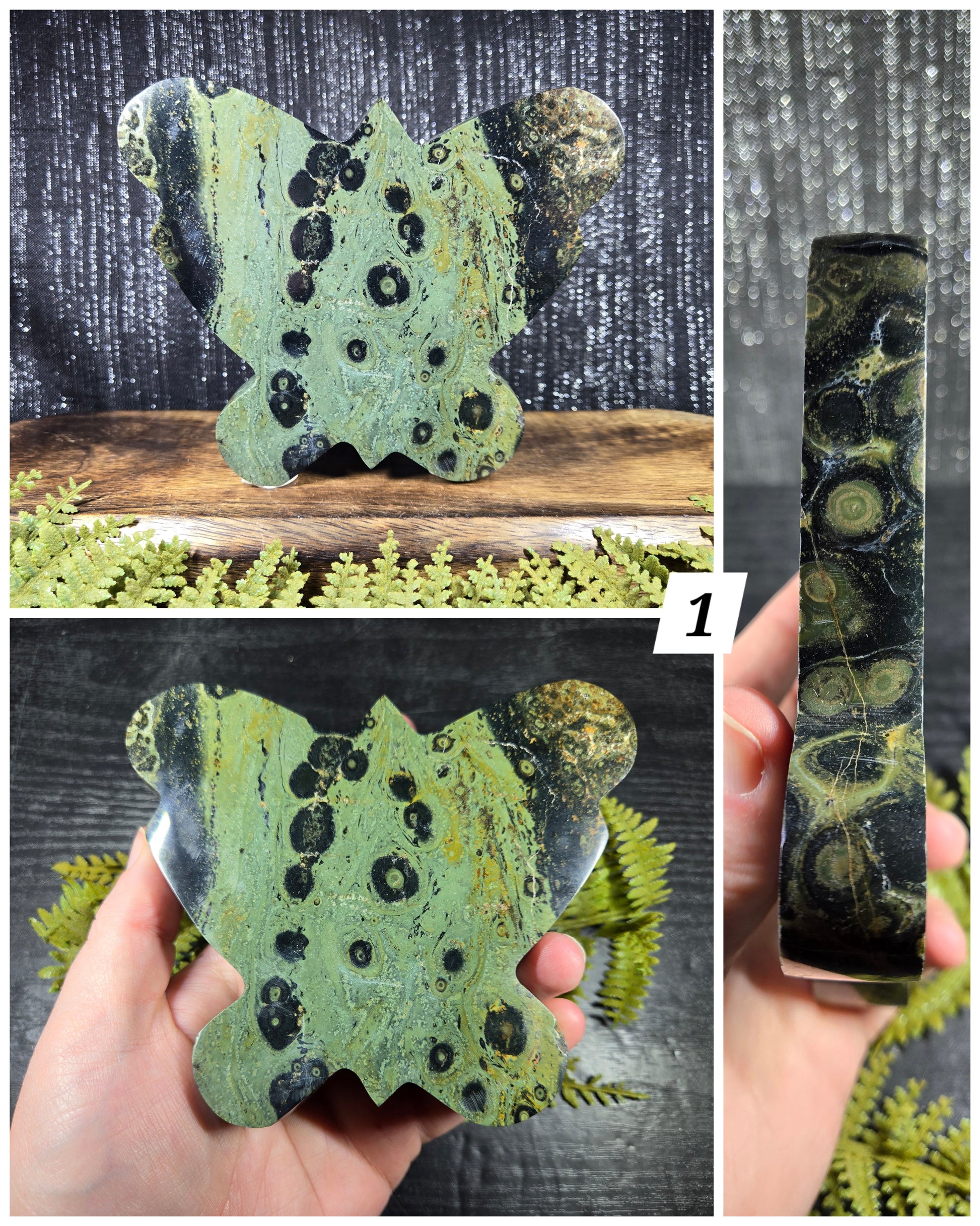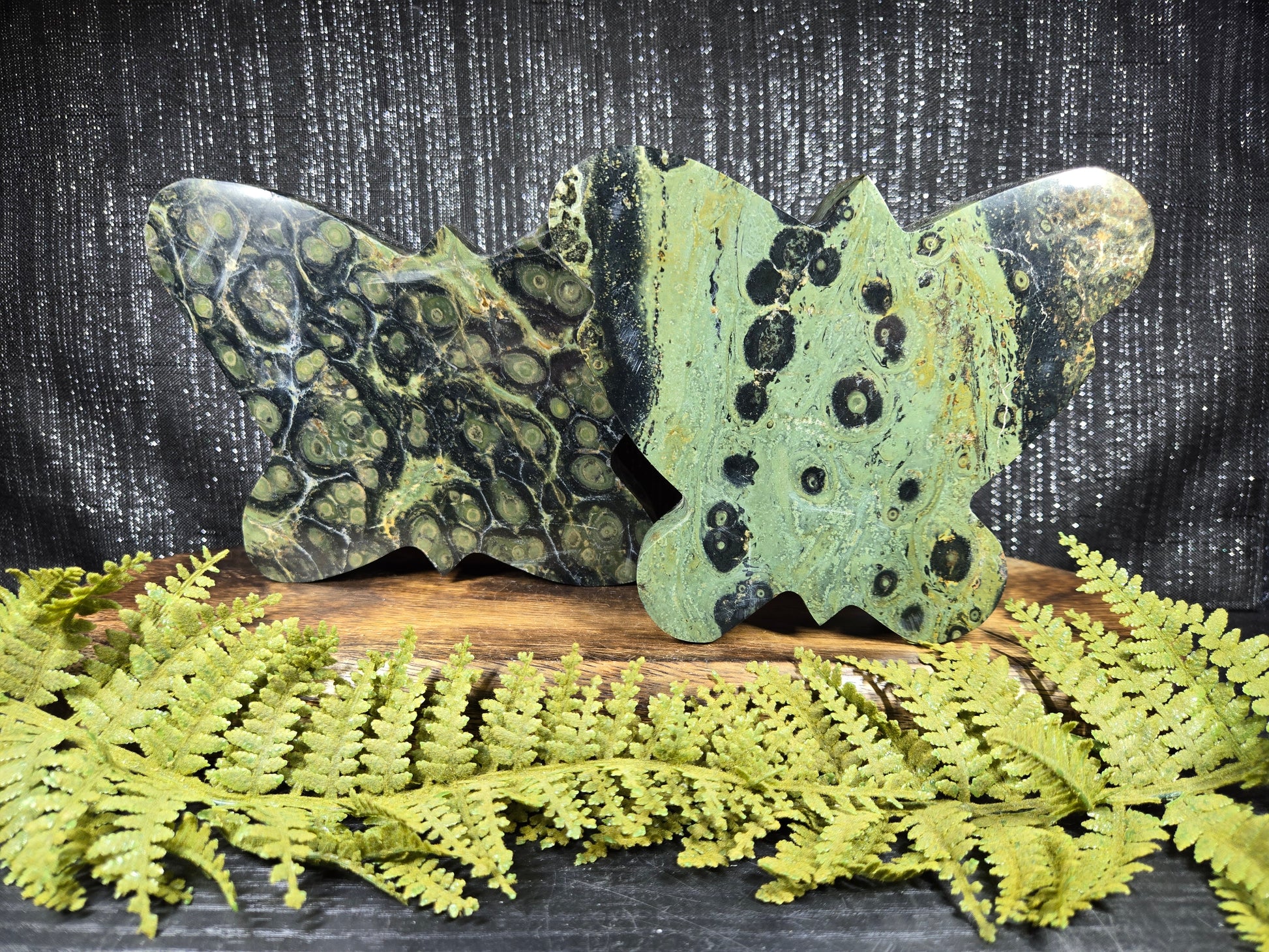 Kambaba Jasper is also sometimes called crocodile jasper due to the Eye patterns and the gorgeous greens you find here. Kambaba is comprised of microcrystalline Quartz interlaced with three billion-year-old Stromatolites, ancient fossilized algae, making those prized Eye patterns!
