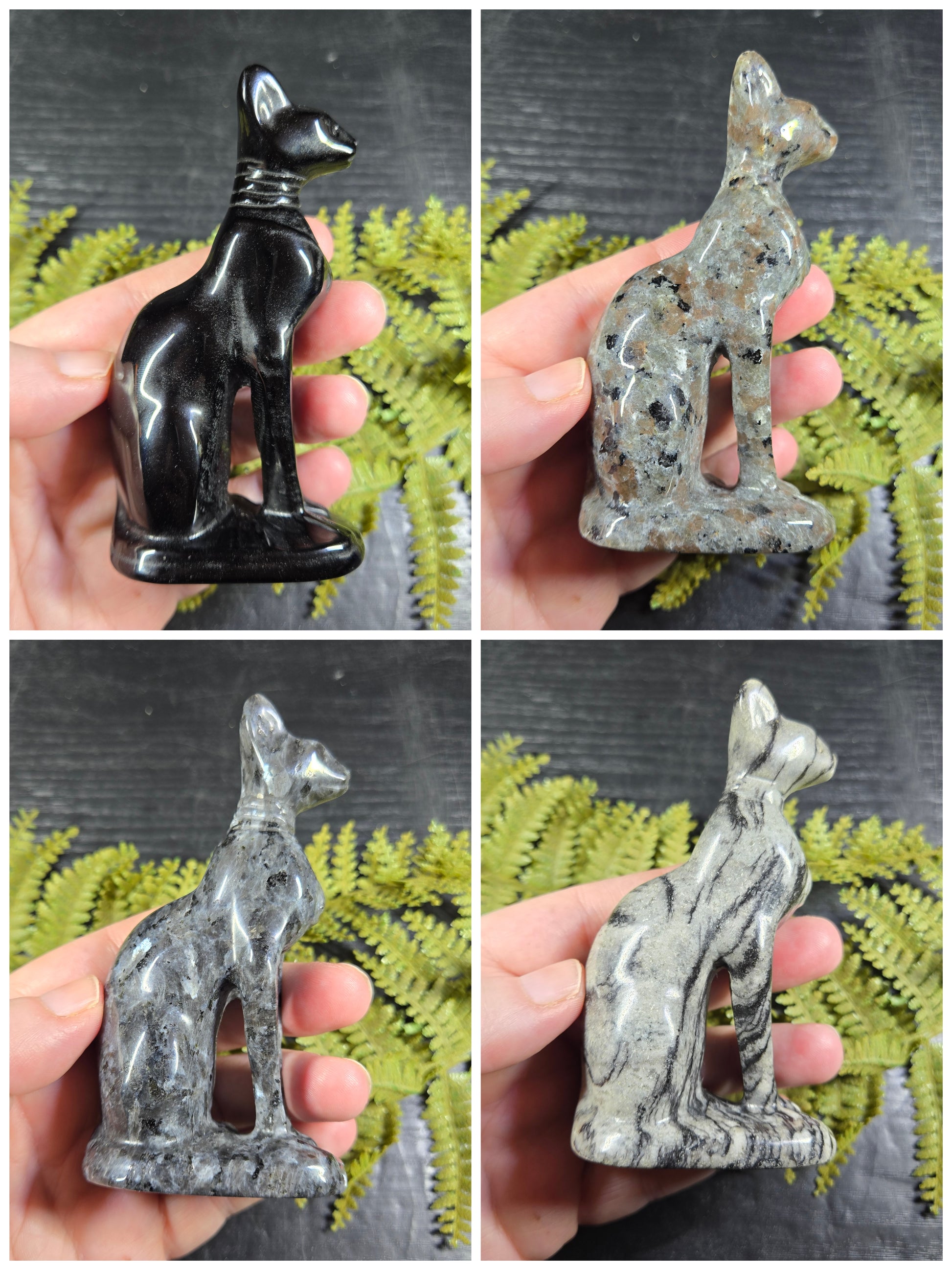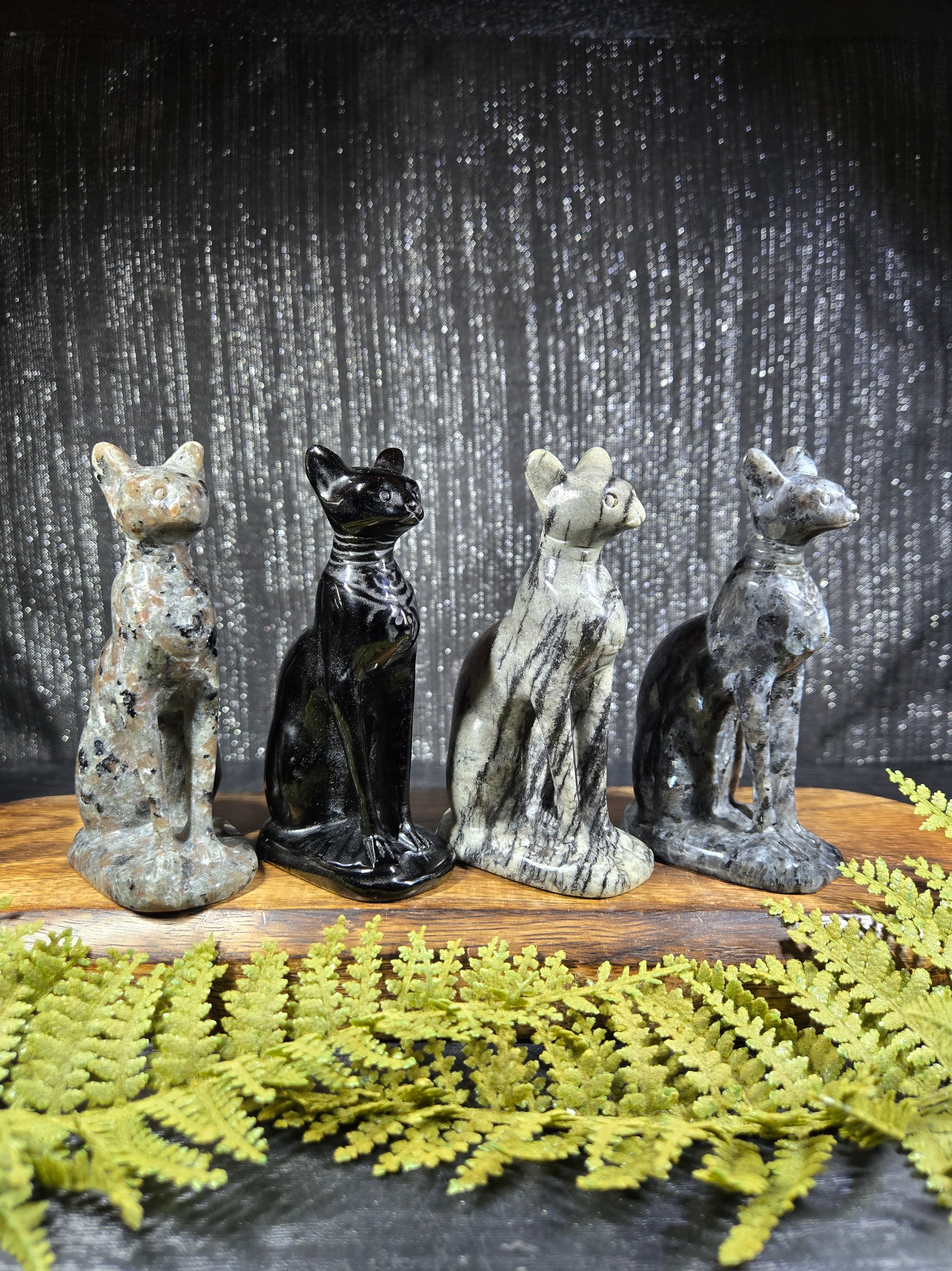 Embrace the mystery and magic of our large Sphynx (hairless) cat carvings, perfect for those who appreciate the elegance and wisdom of these unique feline guardians. Symbolizing intuition, transformation, and protection, these carvings bring a mystical energy to any space. These pieces are spectacular to enchant as a guardian or ward since cats are known as spiritual guardians, warding off negative energy.