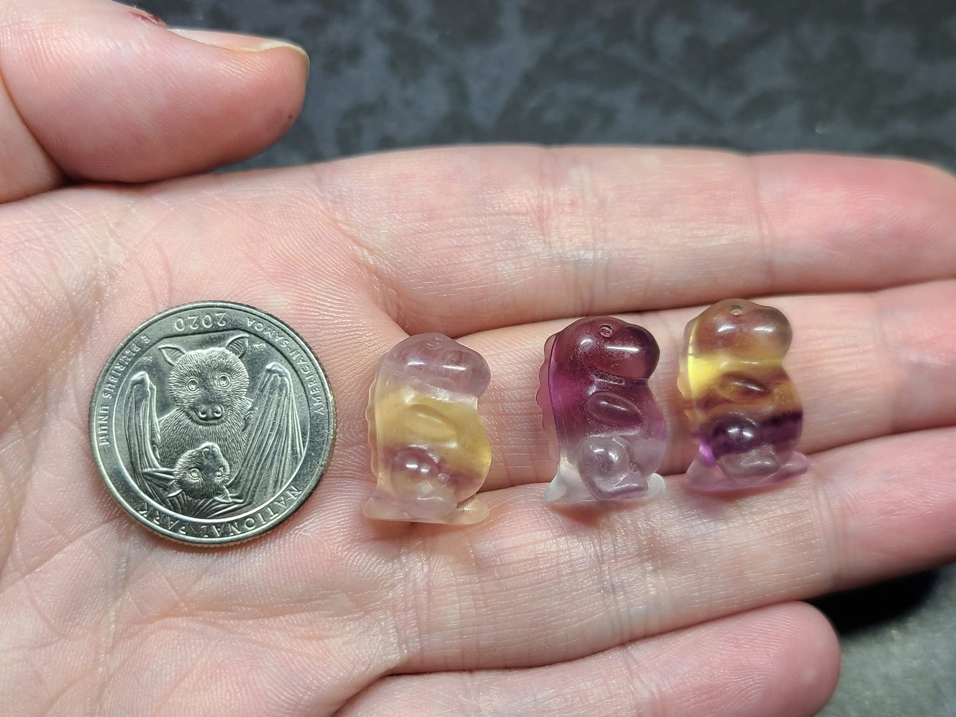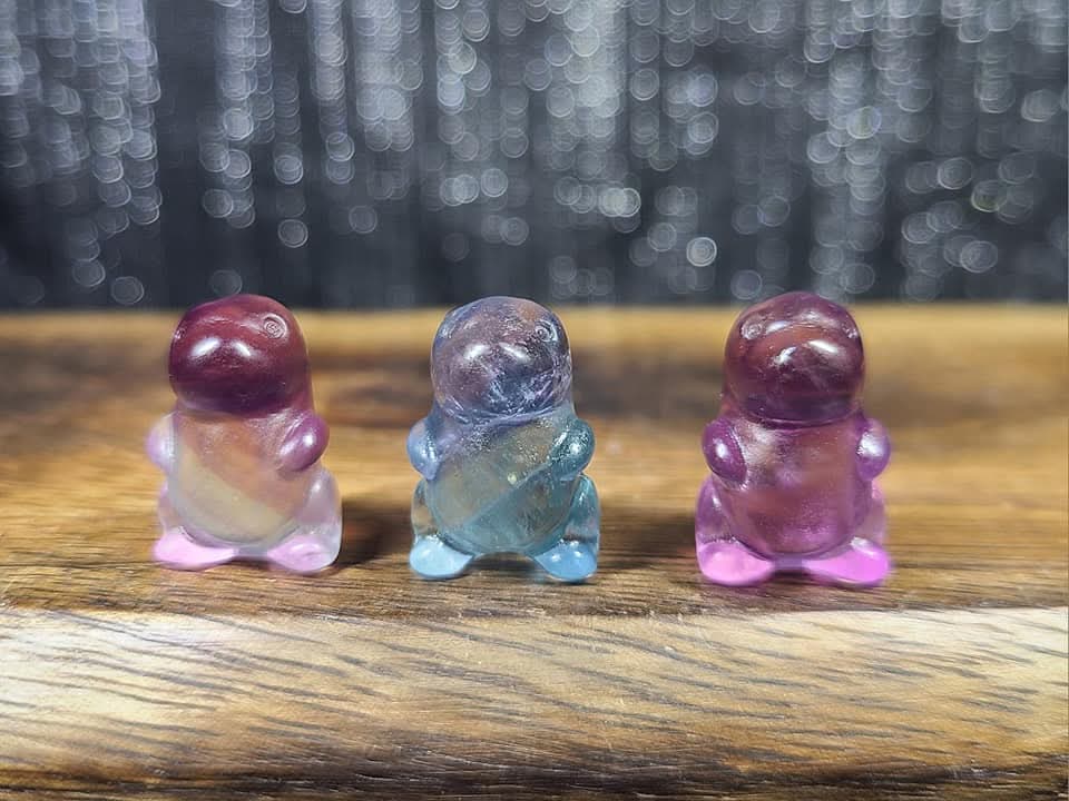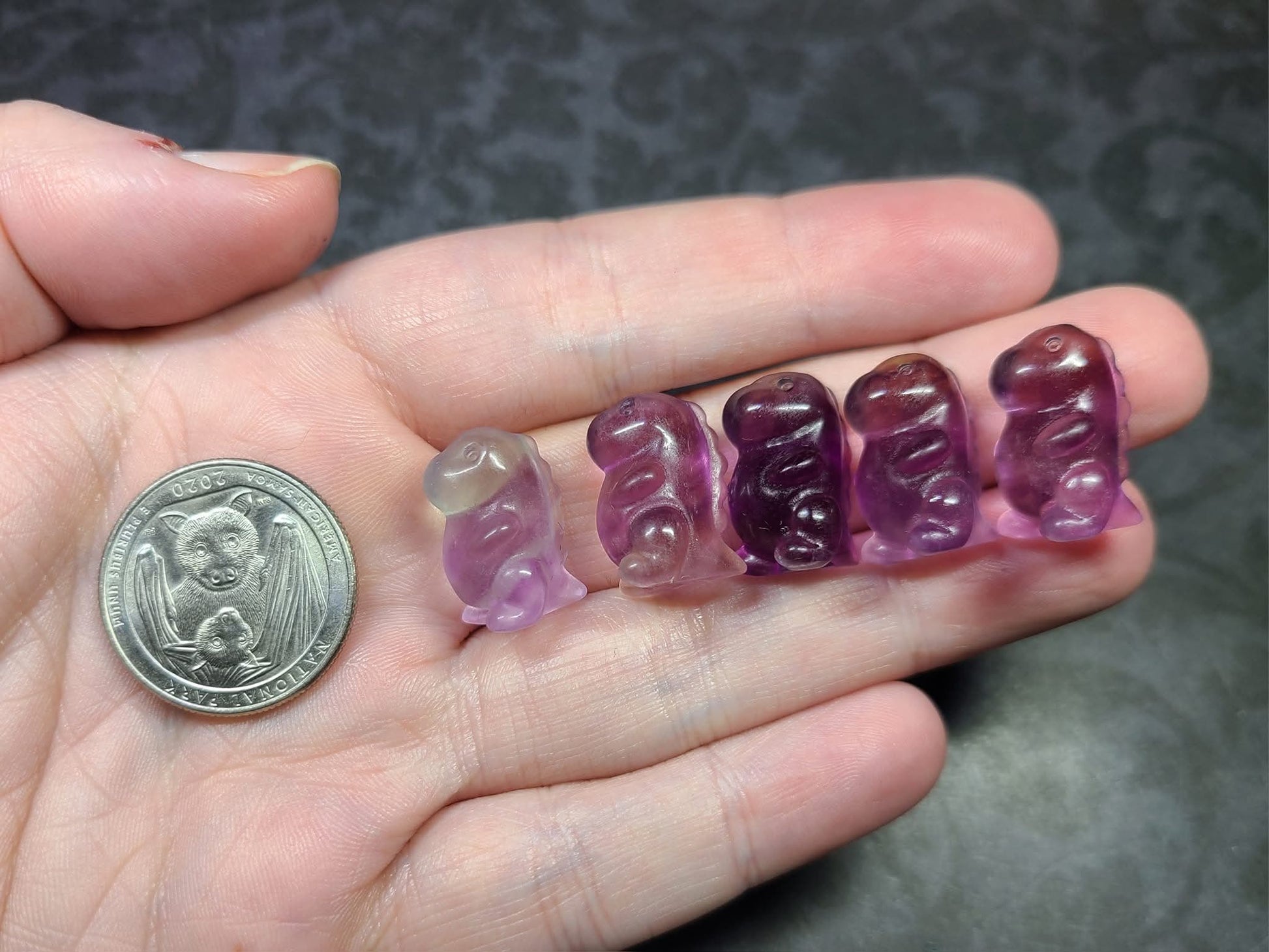Each one of these hydro-carved friends are micro sized, under 1" tall and free standing.