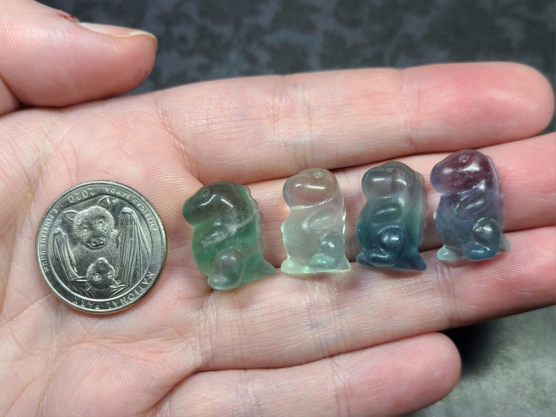 These little chubby fluorite dinos are so adorable and make the perfect desk friend! They have spines down their back, round bellies and cartoon like bubble faces. They would make absolutely wonderful gifts for any dinosaur lover.