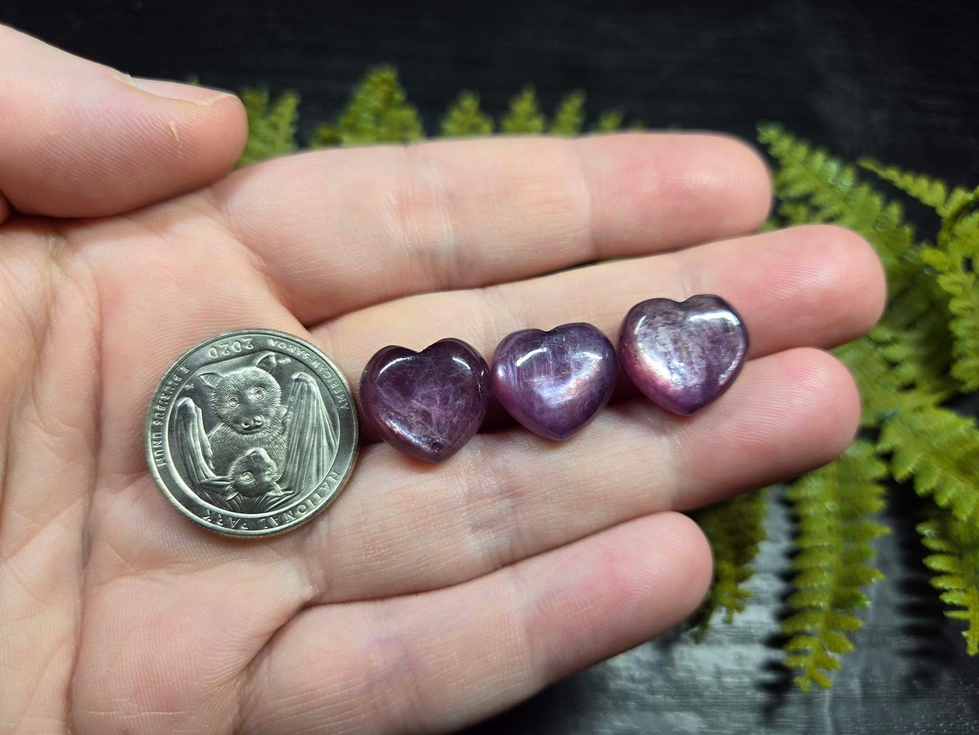 Purple or Green Gem Lepidolite Mini Hearts