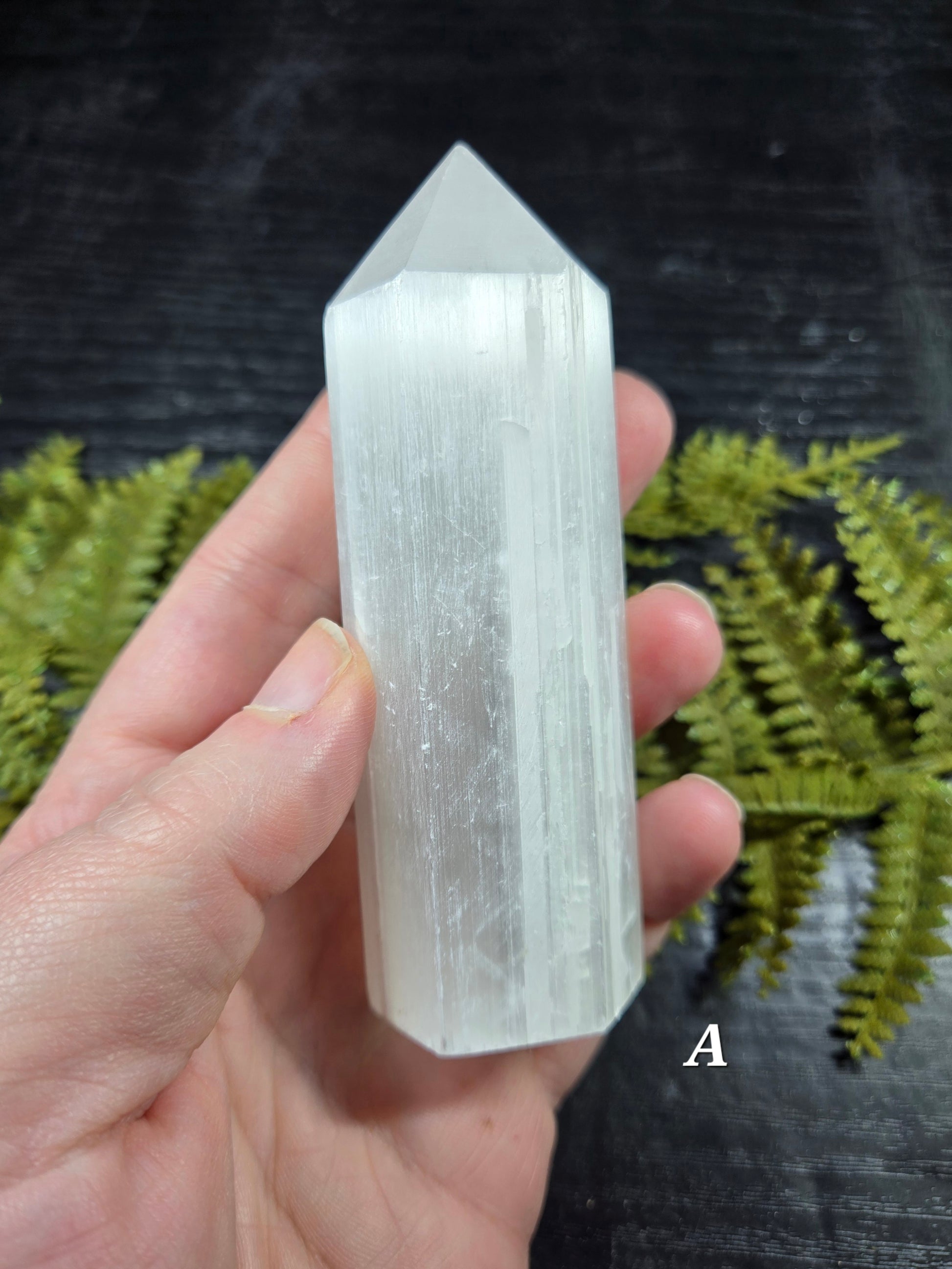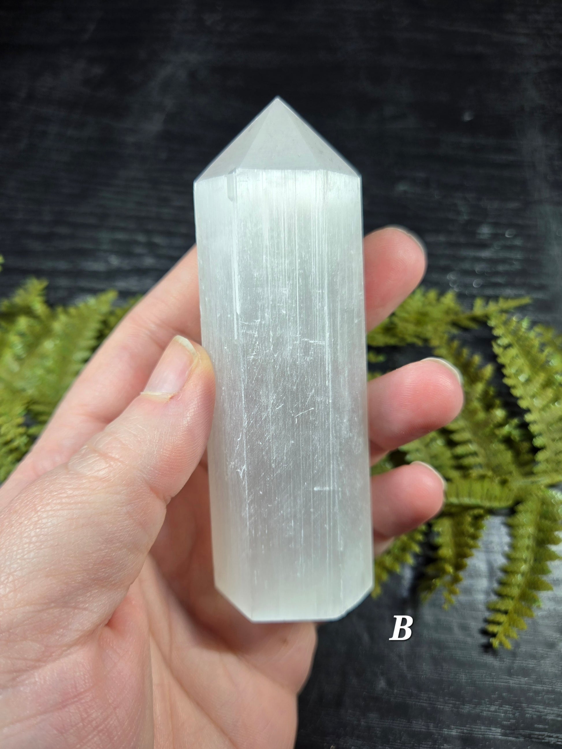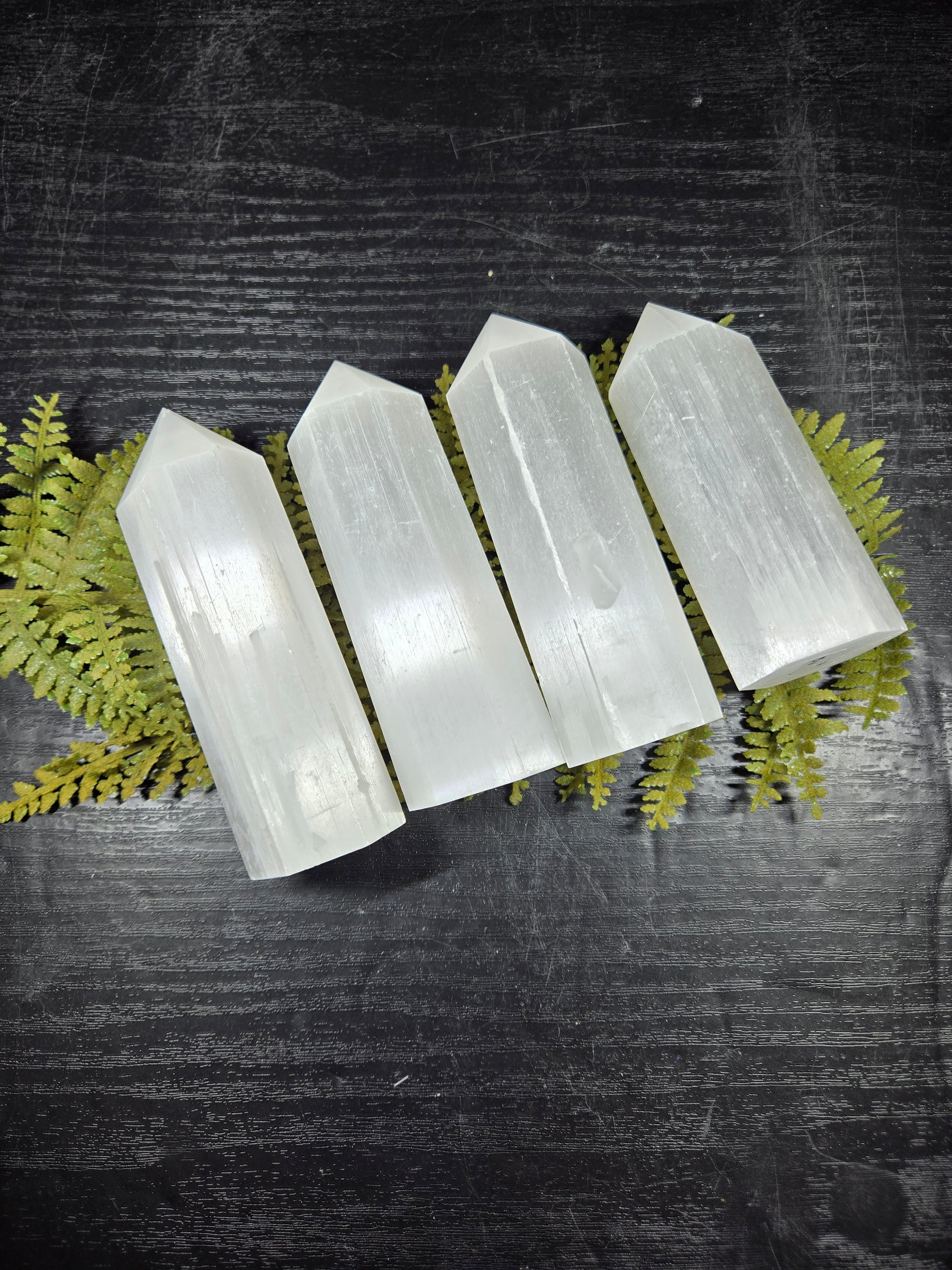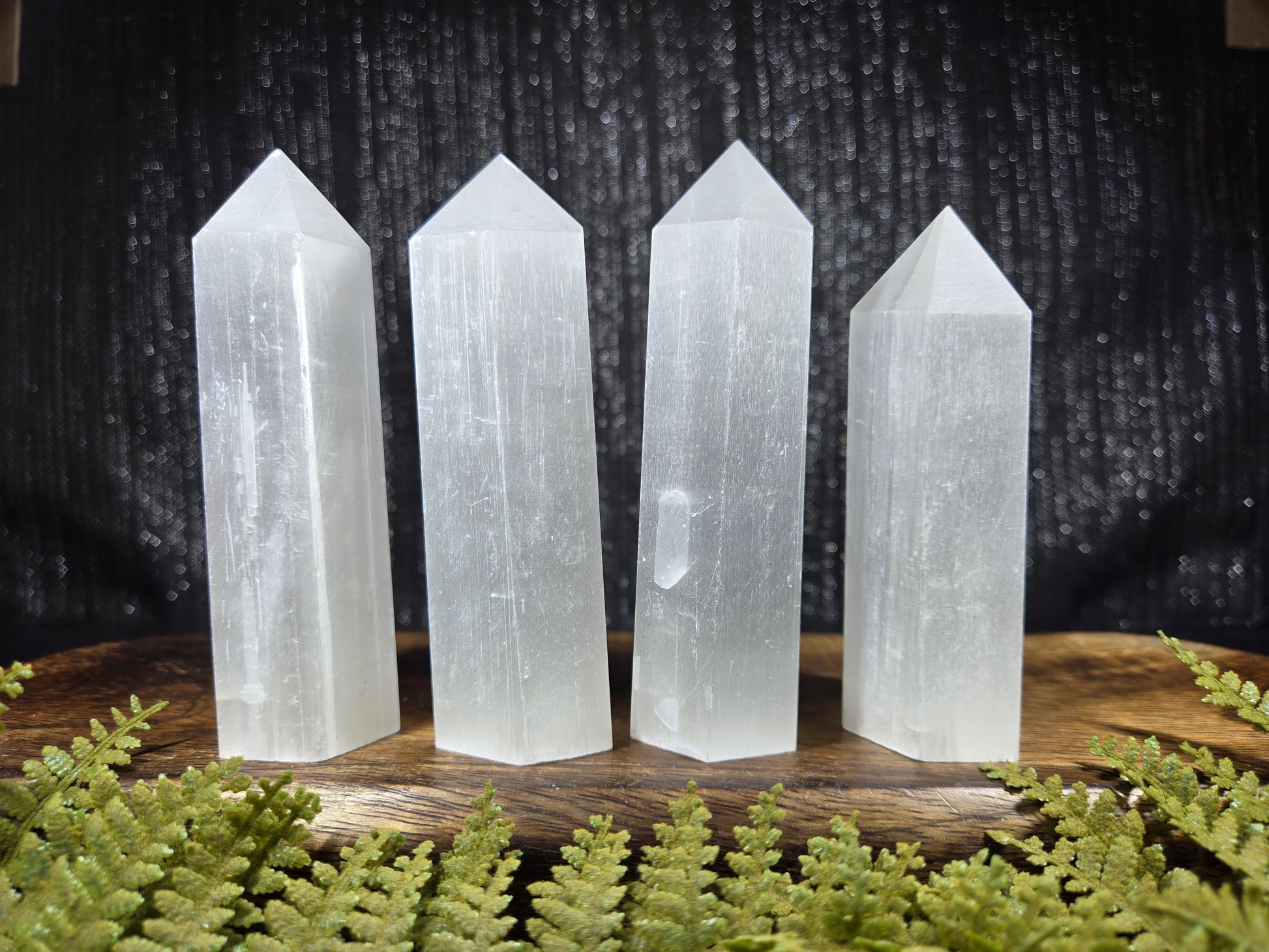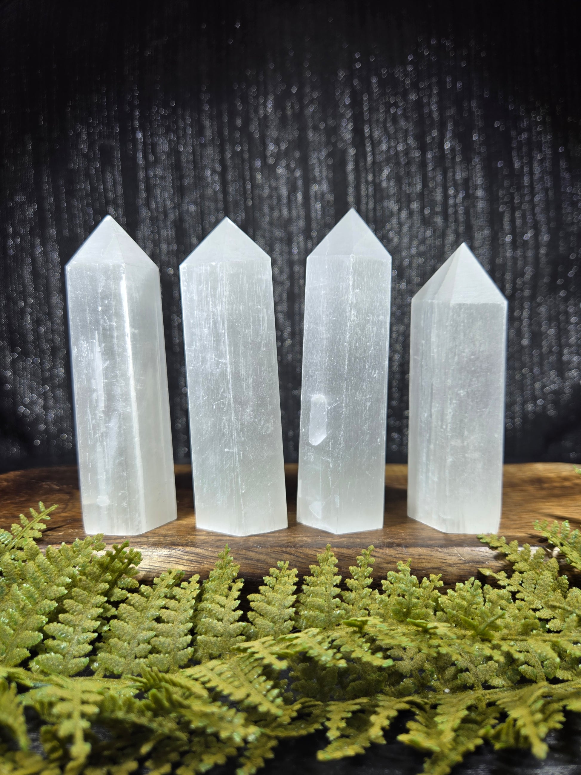 These are super smooth towers made from satin spar selenite and are absolutely perfect for your work space or Sacred space! The natural serenity of satin spar (selenite) purifies your space, enhances clarity and positivity of thought and helps with meditation.