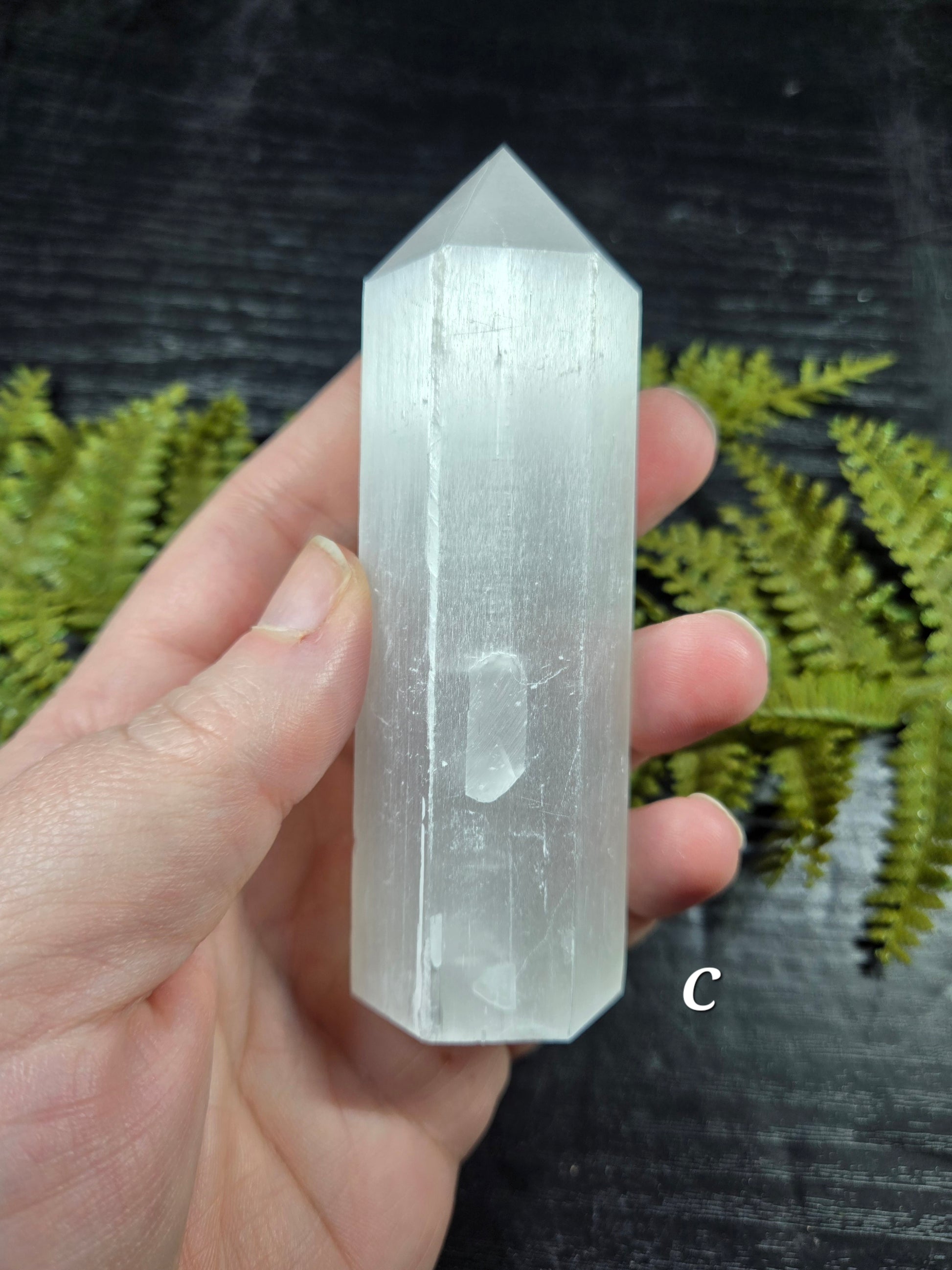 Selenite/Satin spar is an incredibly soft stone. Nicks, bumps, scratches and dings may occur naturally.
