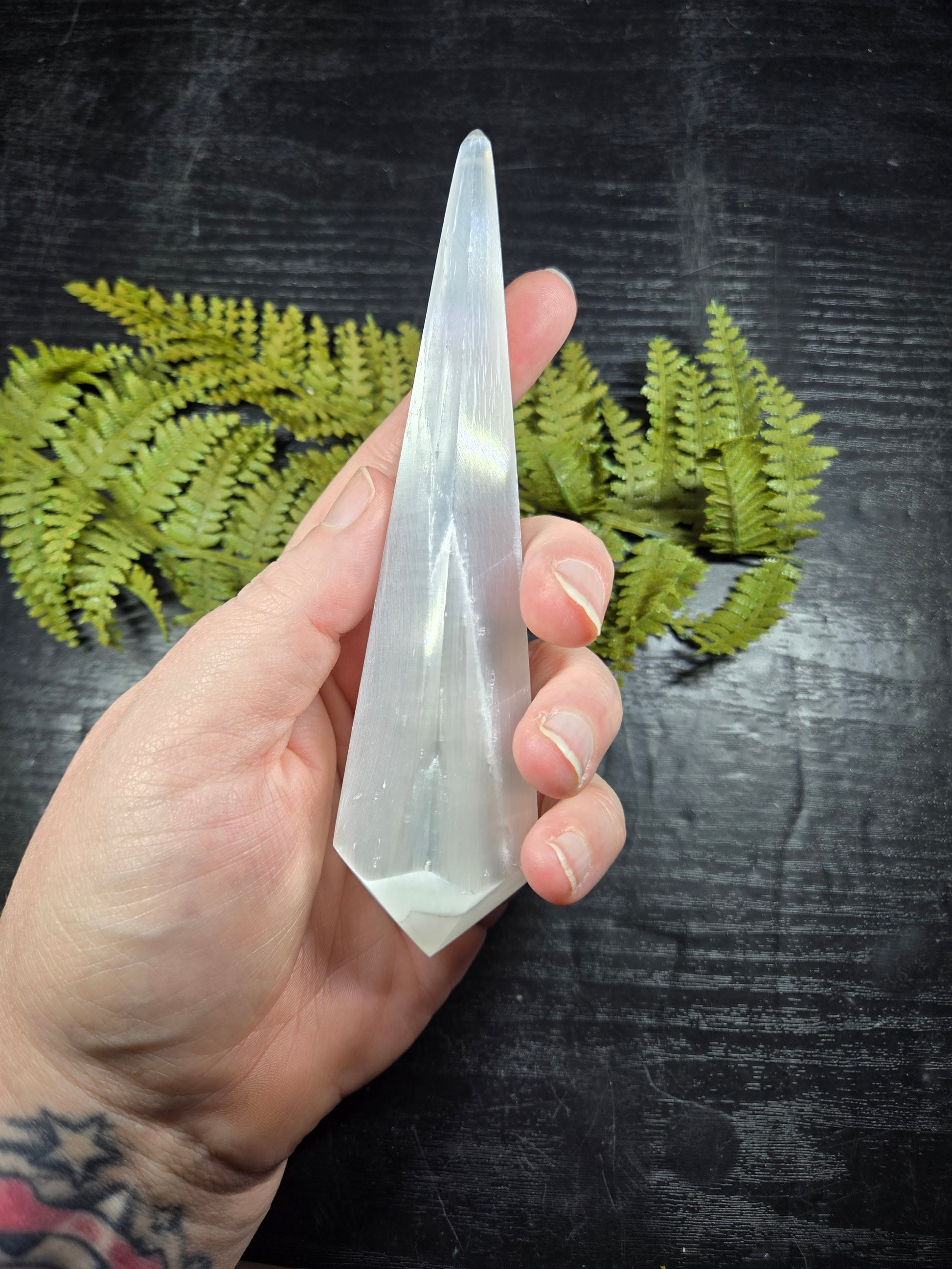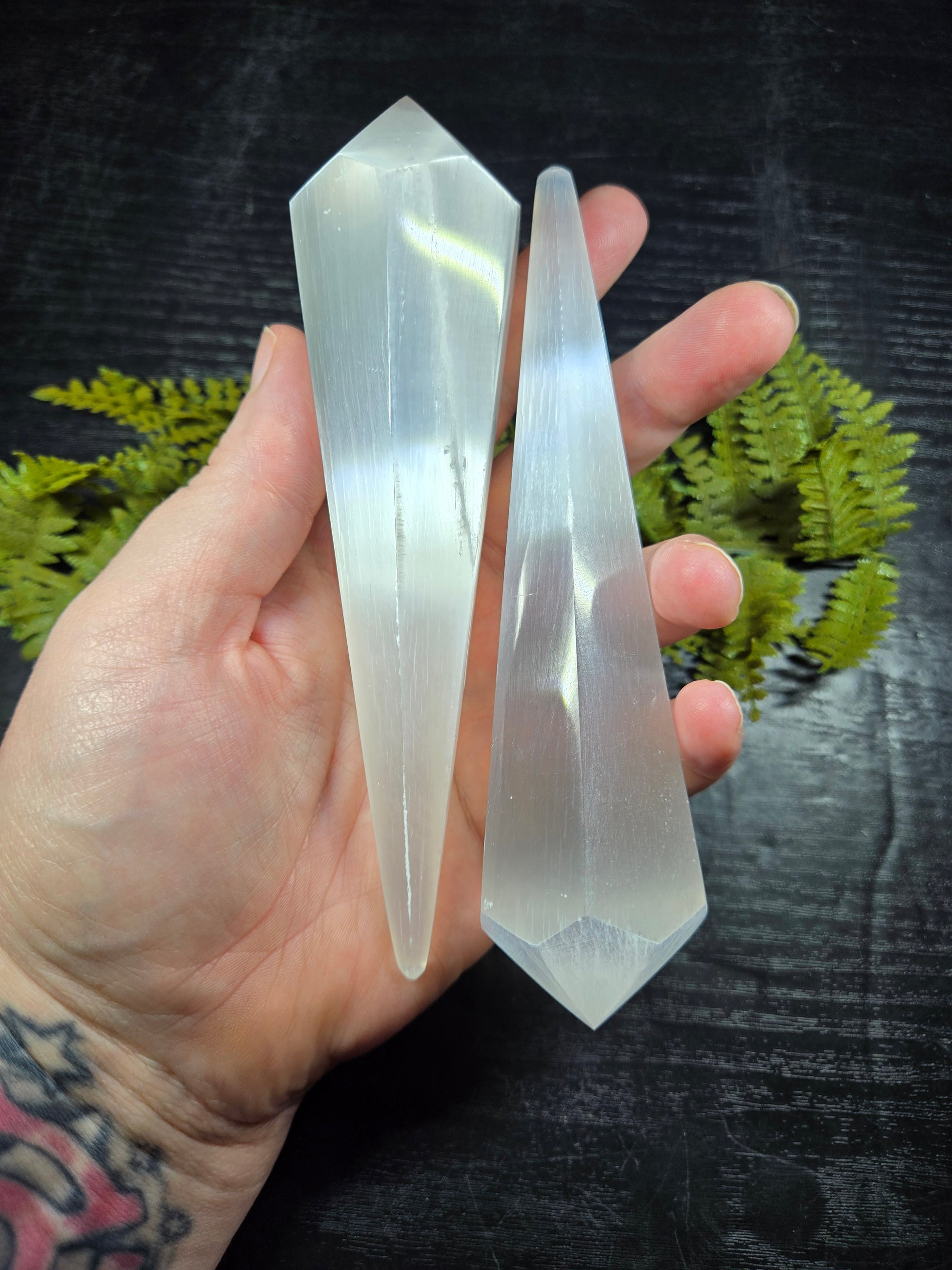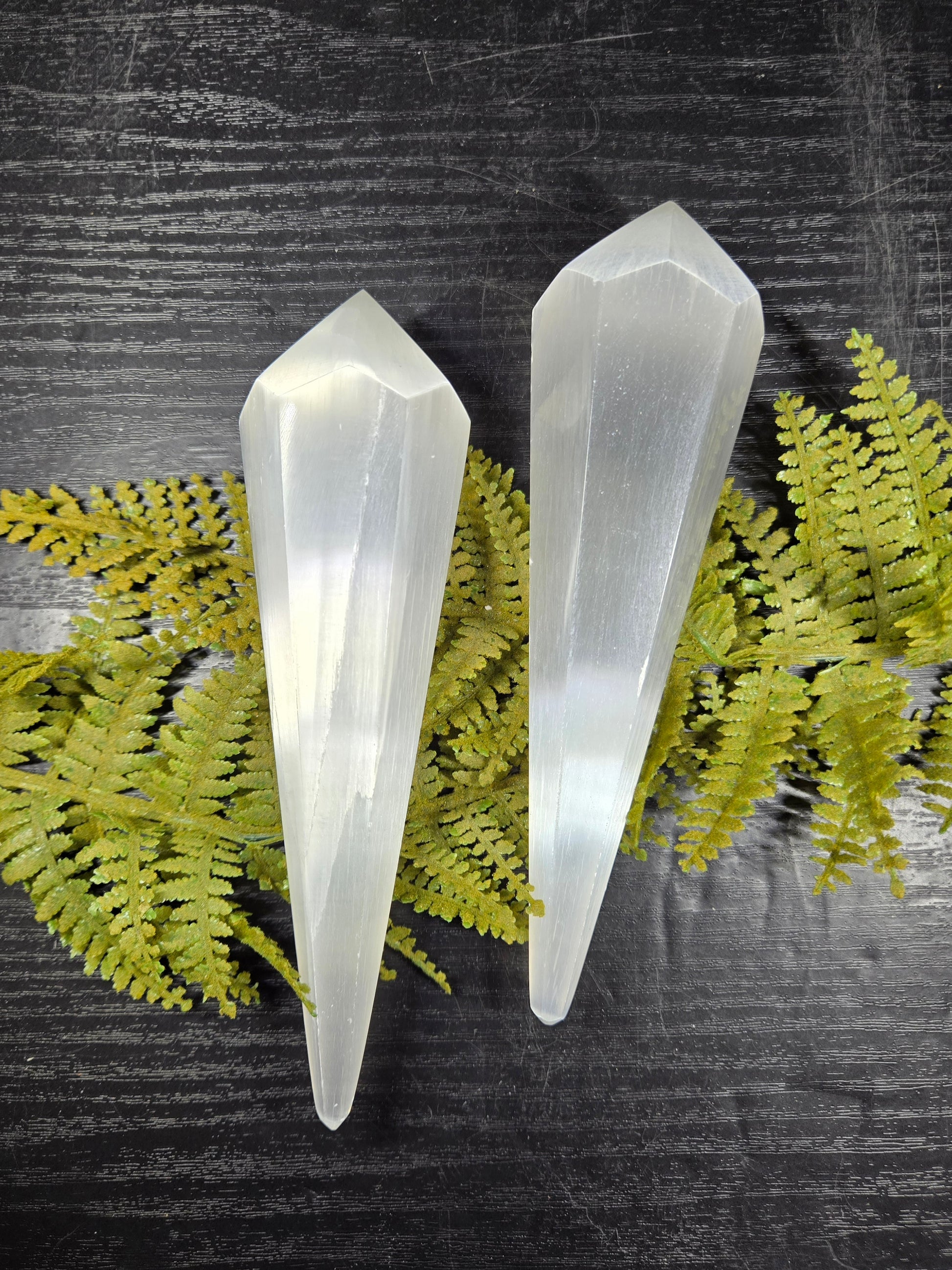 These are healing tools that have the ability to focus energy through the entire length and transfer that energy through the ends. Selenite is the ideal crystal for all types of energy clearing, especially for living and work spaces.