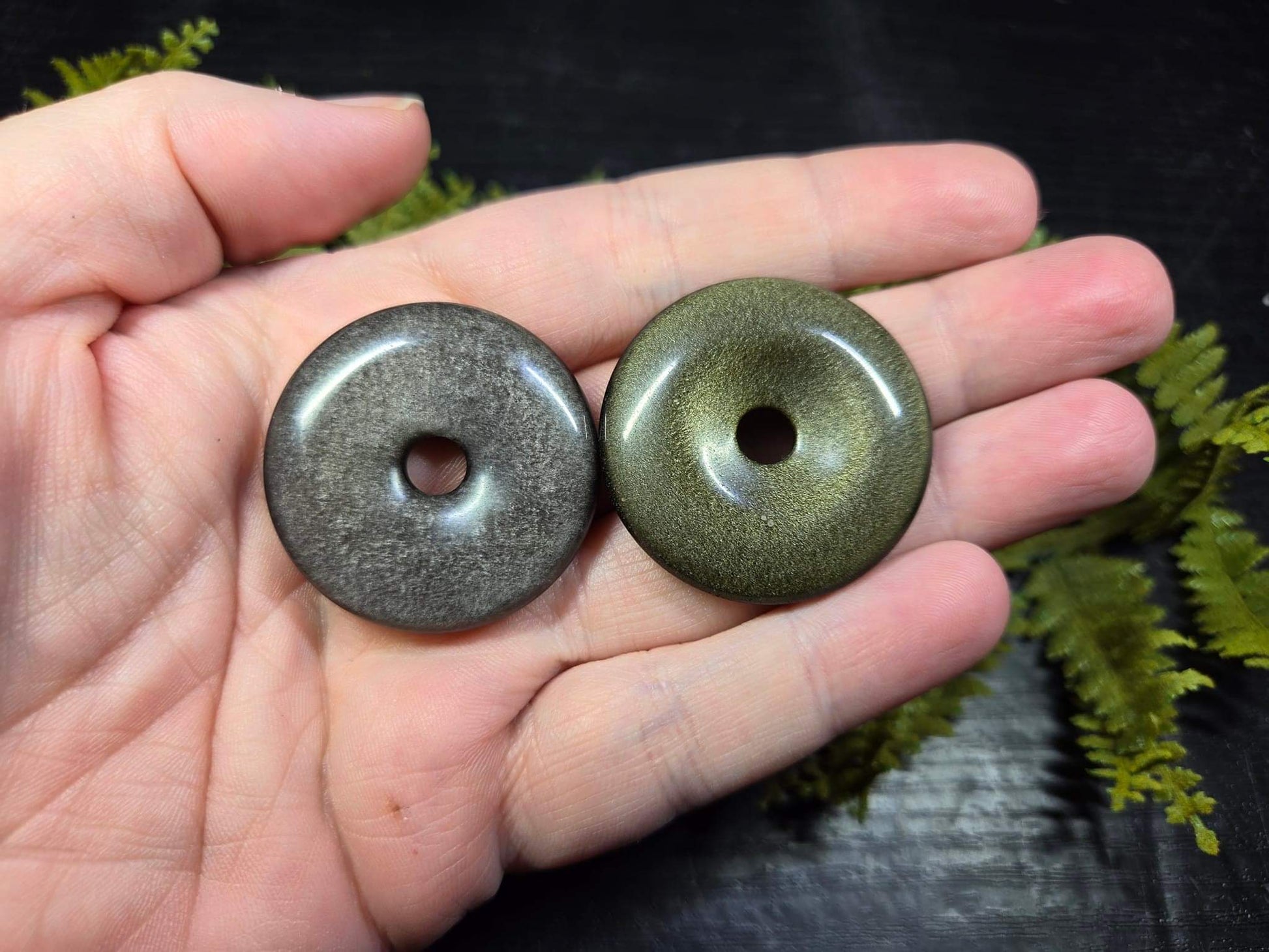 These crystal donuts are the perfect decorative item to add a punch to your collection. These are so multipurpose! You can use them as sphere stands, string them for a simple necklace, or to hold another crystal (like a heart or tumble).