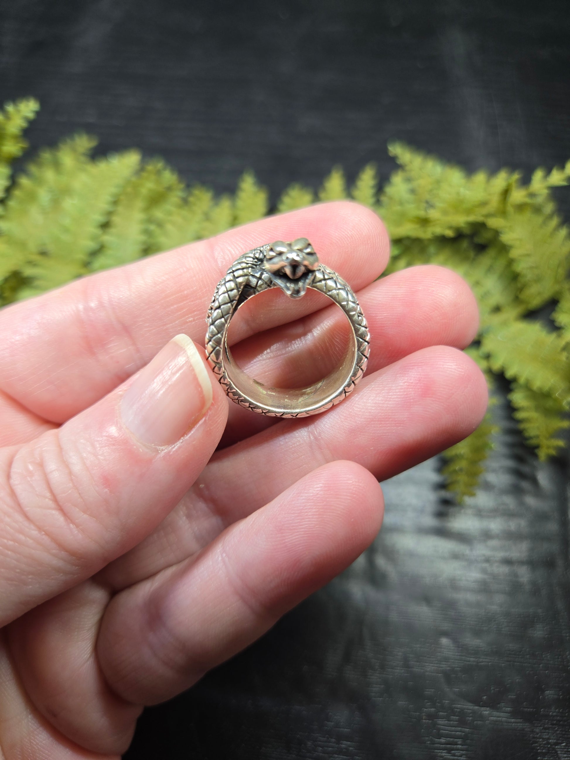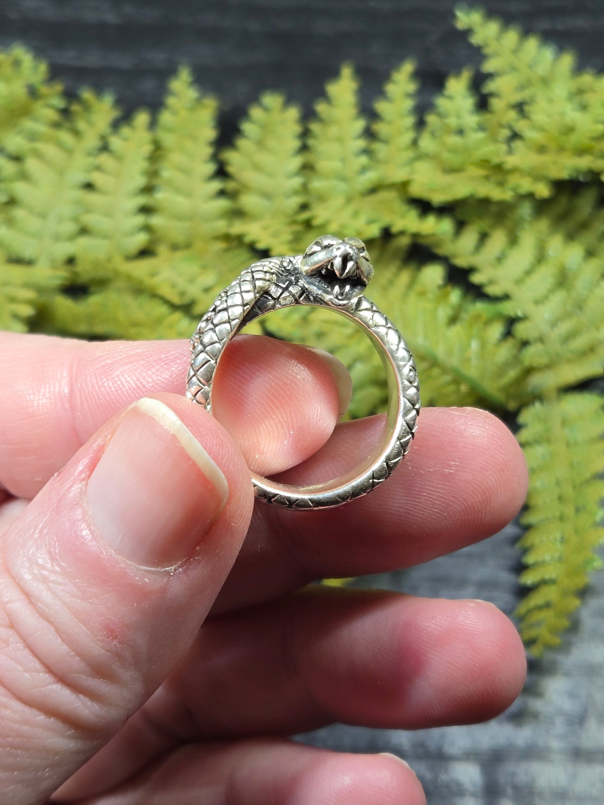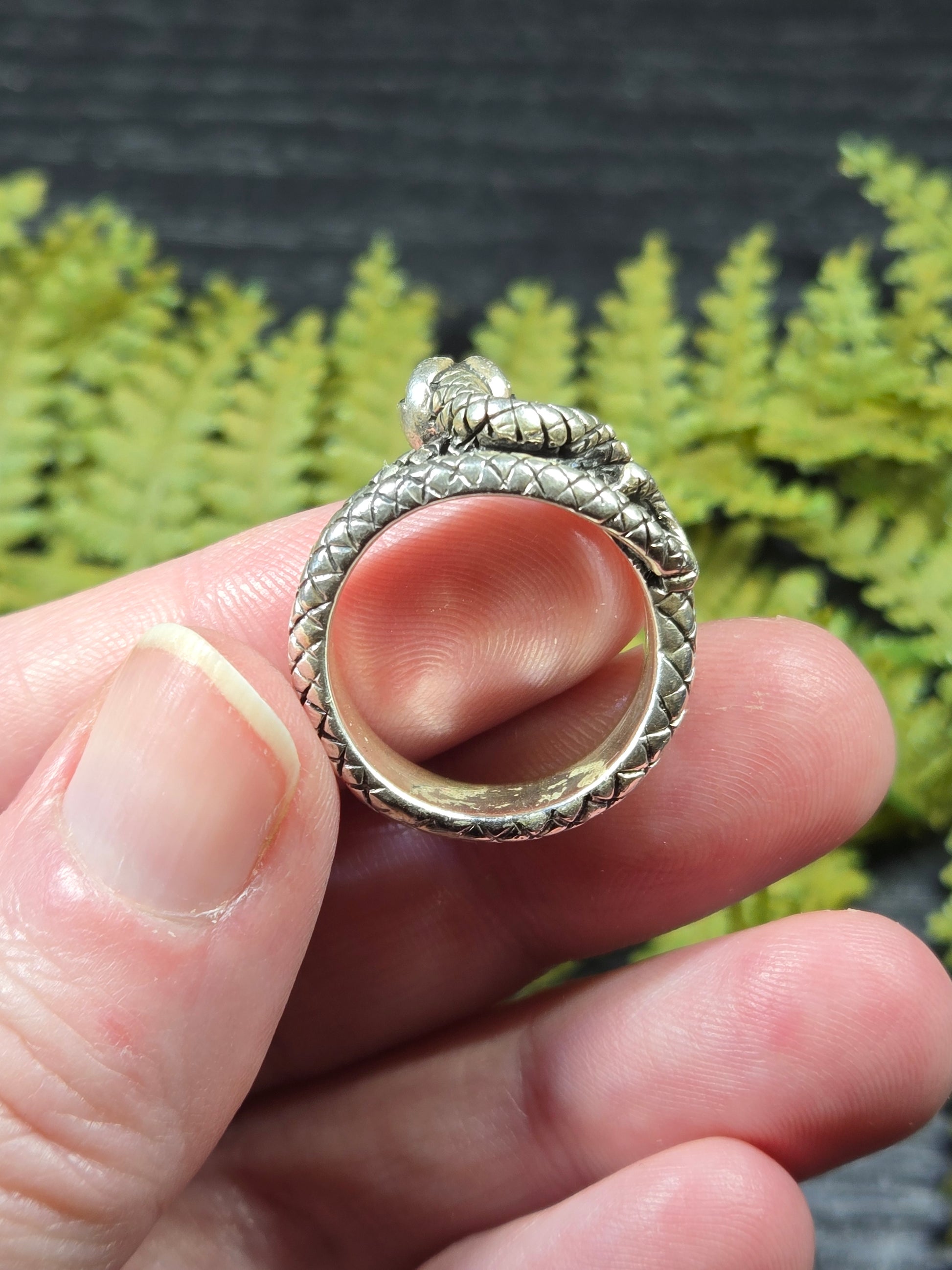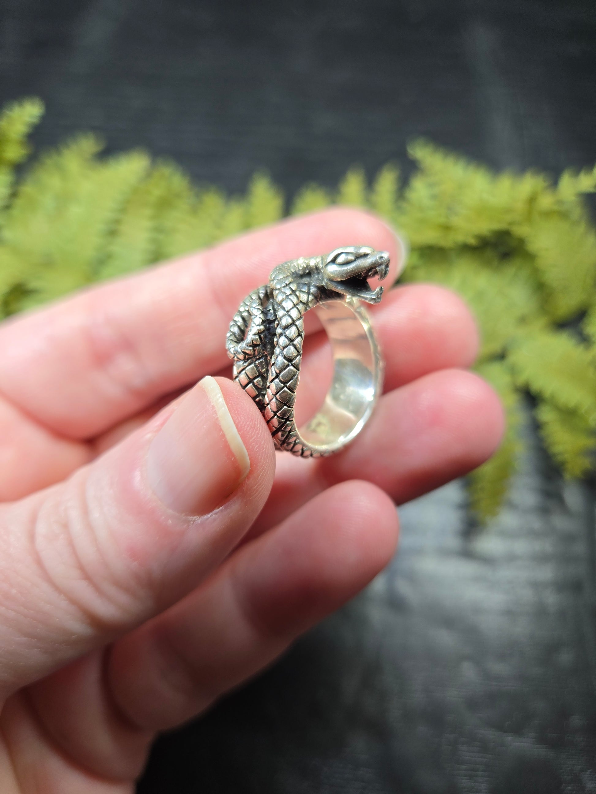 This ring is a stunning piece for those snake lovers out there. It is a snake with its mouth open wide, doubly wrapped around your finger. It is a gorgeous protection amulet, or just a stunning representation for our snake loving friends.