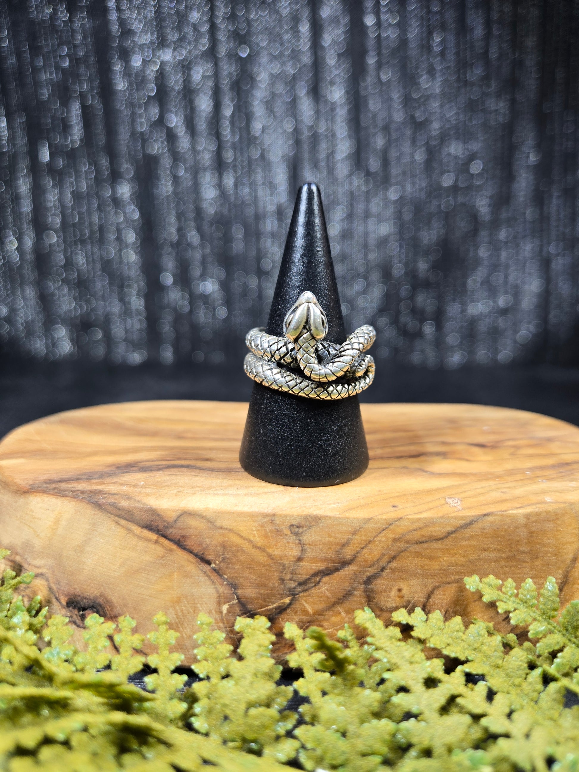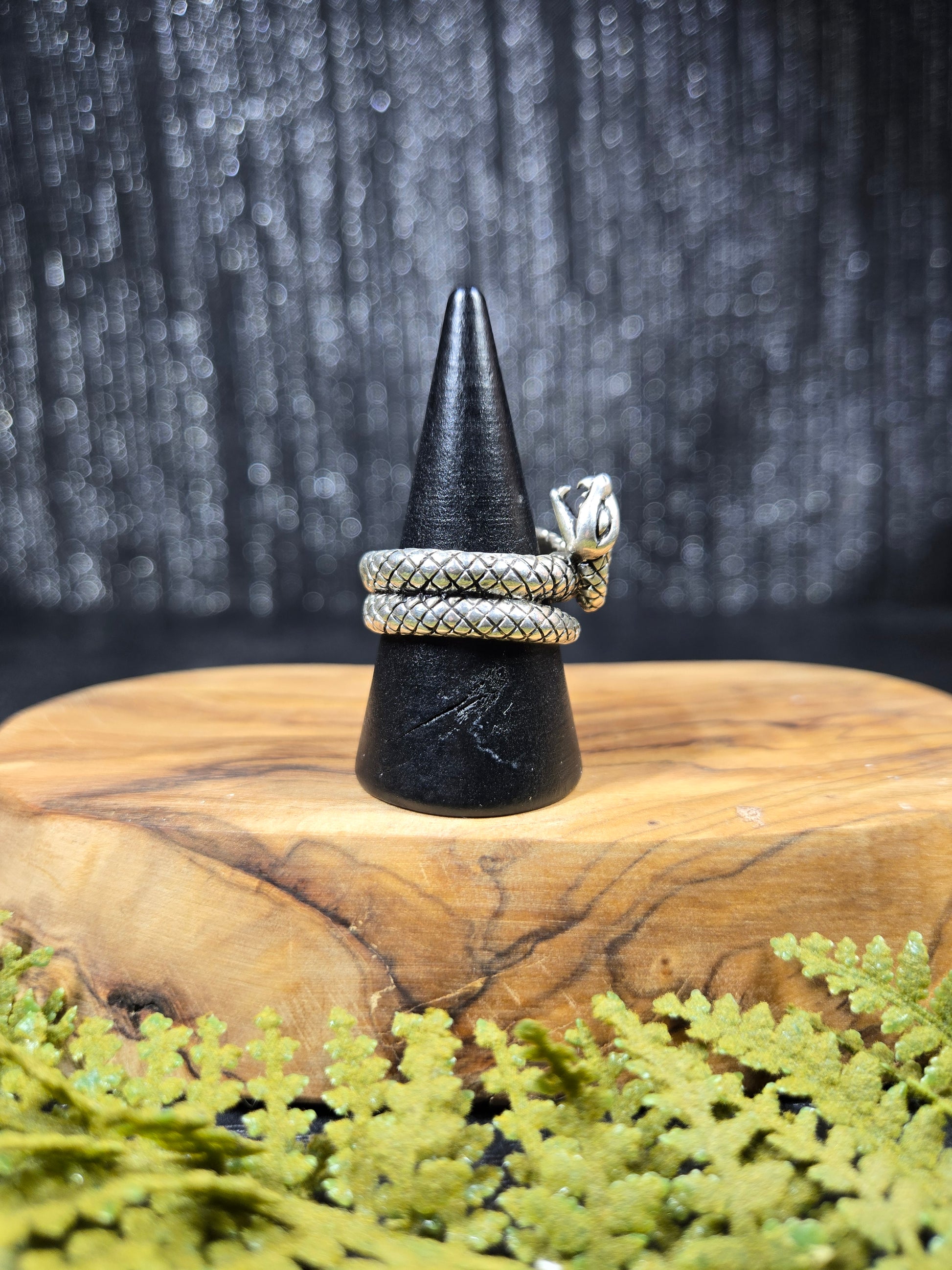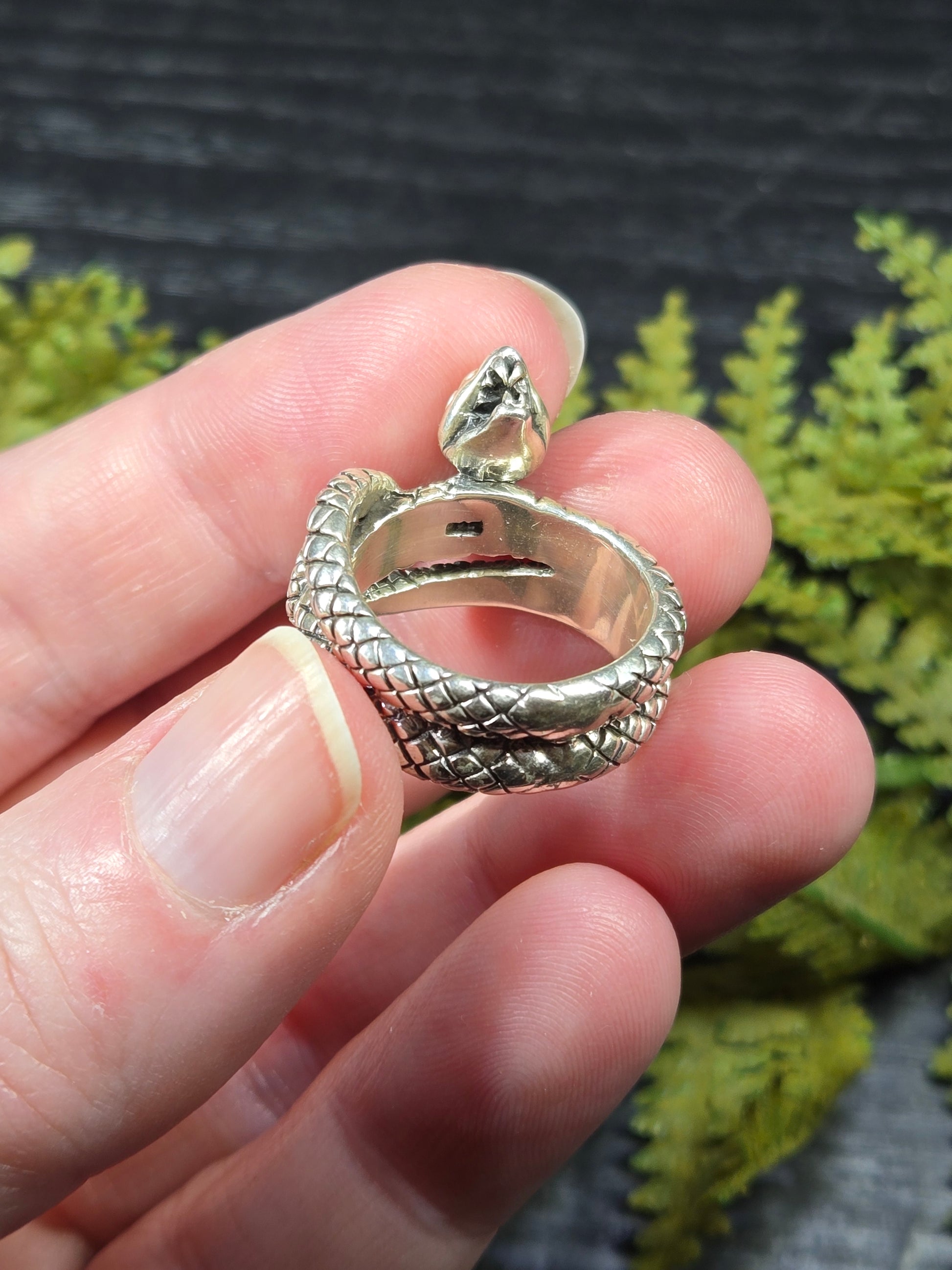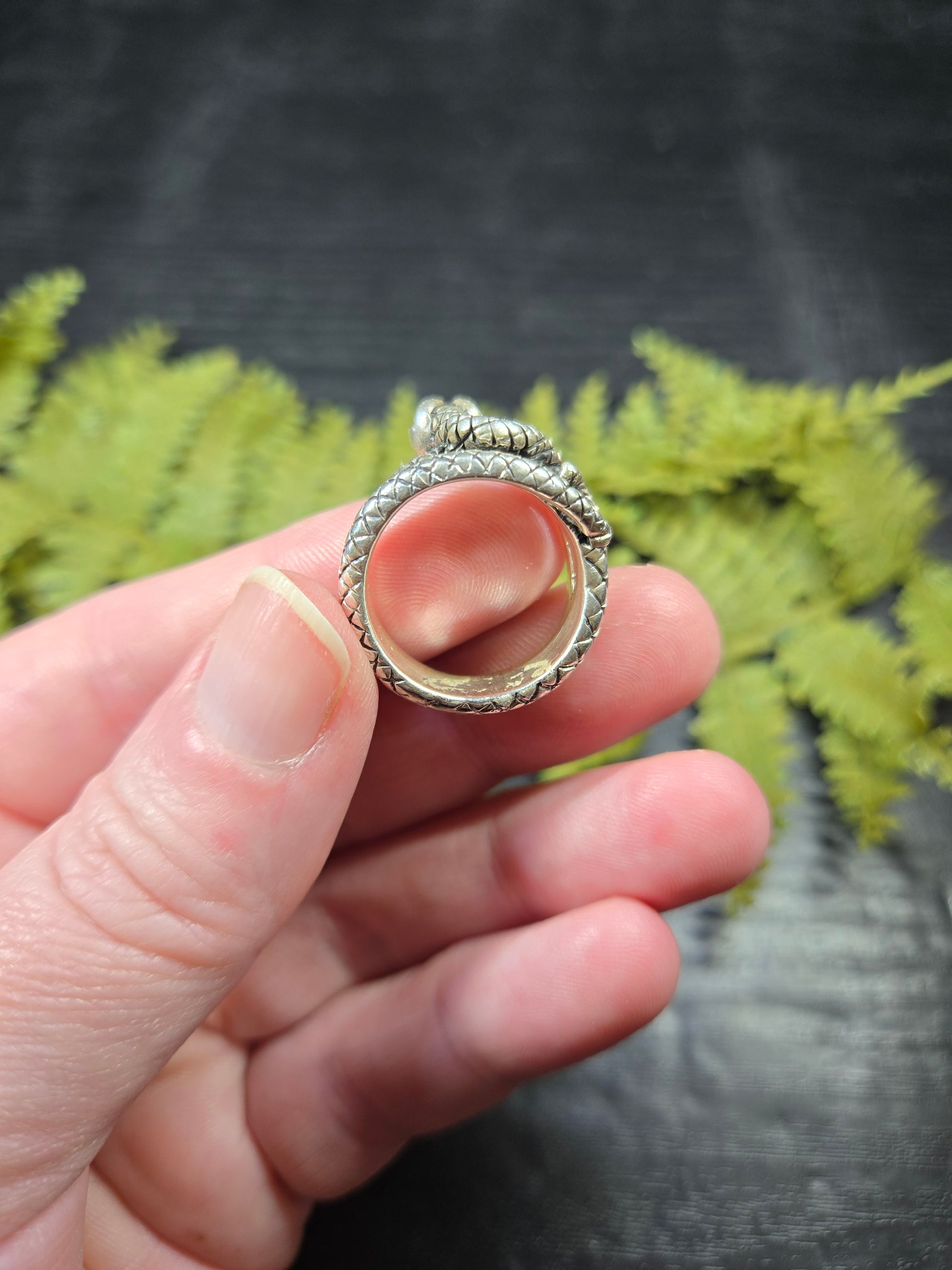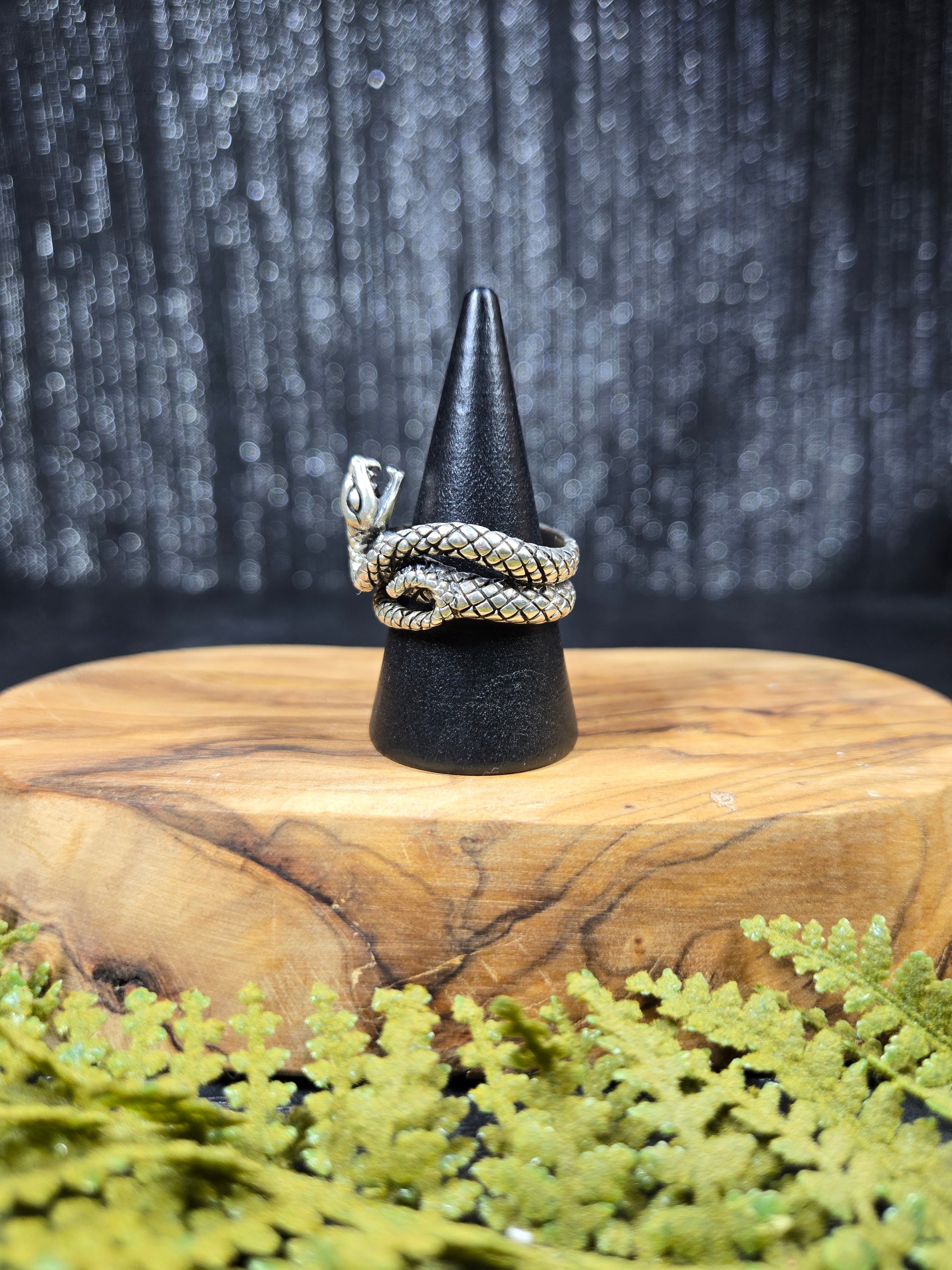 This ring is a stunning piece for those snake lovers out there. It is a snake with its mouth open wide, doubly wrapped around your finger. It is a gorgeous protection amulet, or just a stunning representation for our snake loving friends.