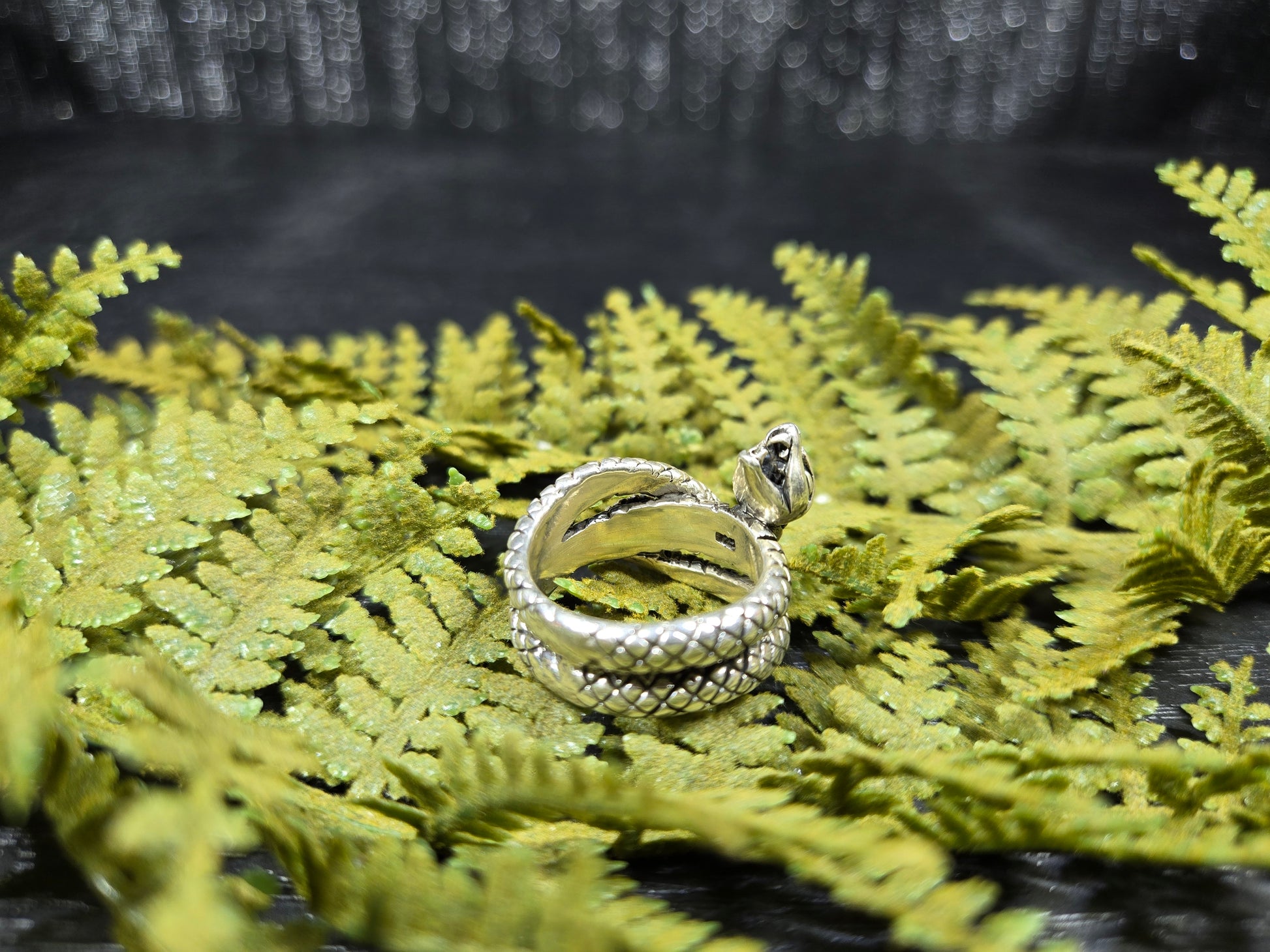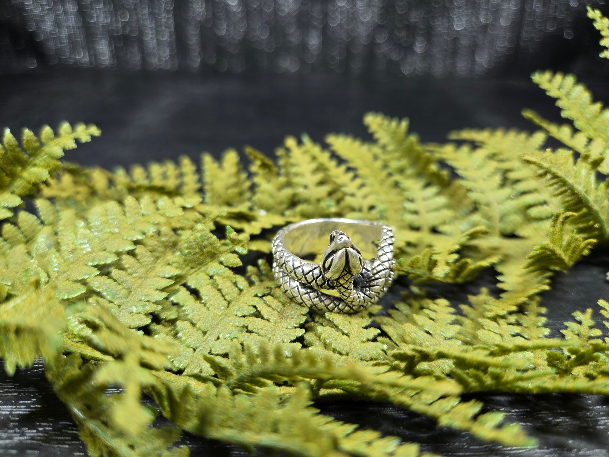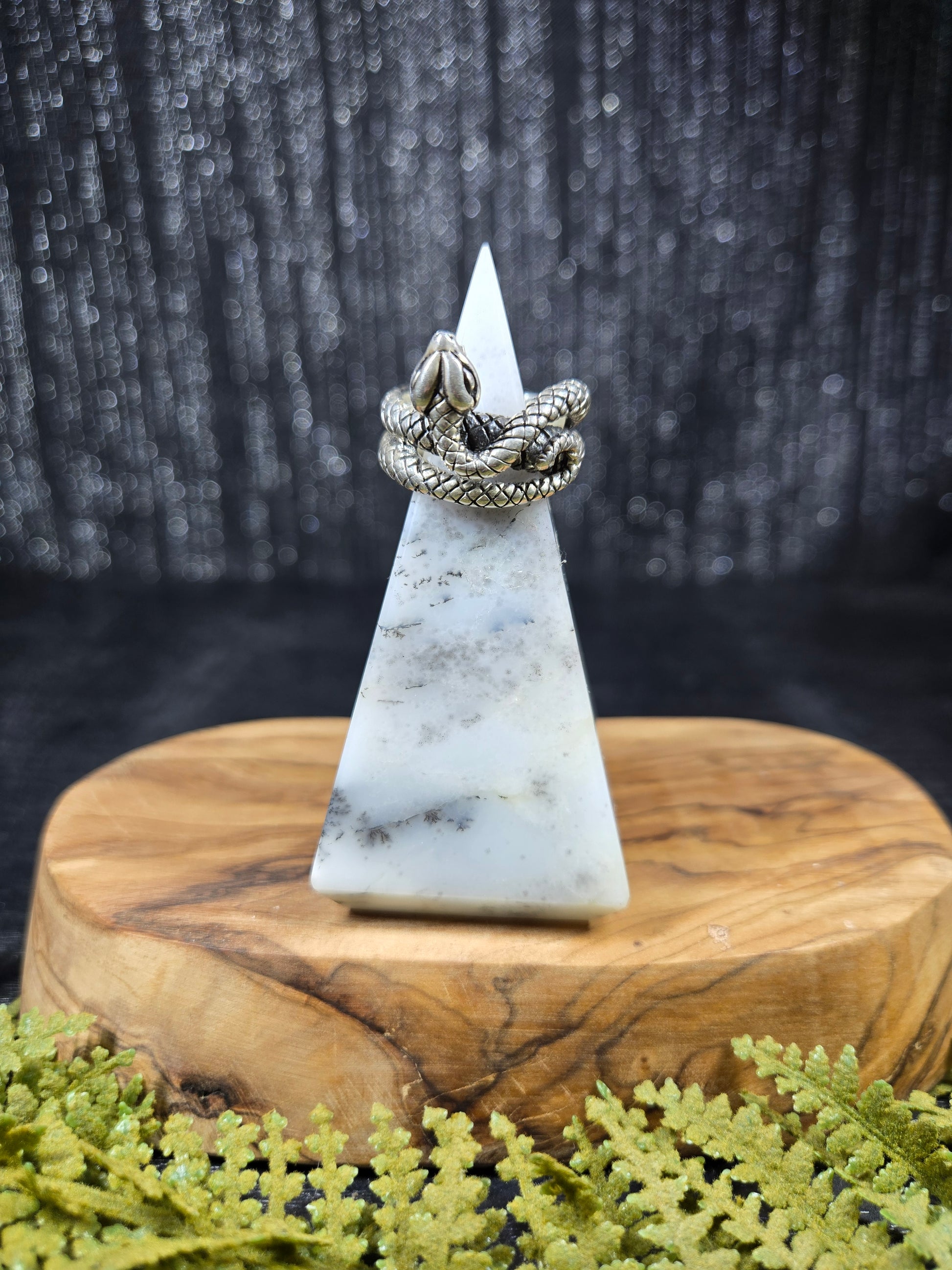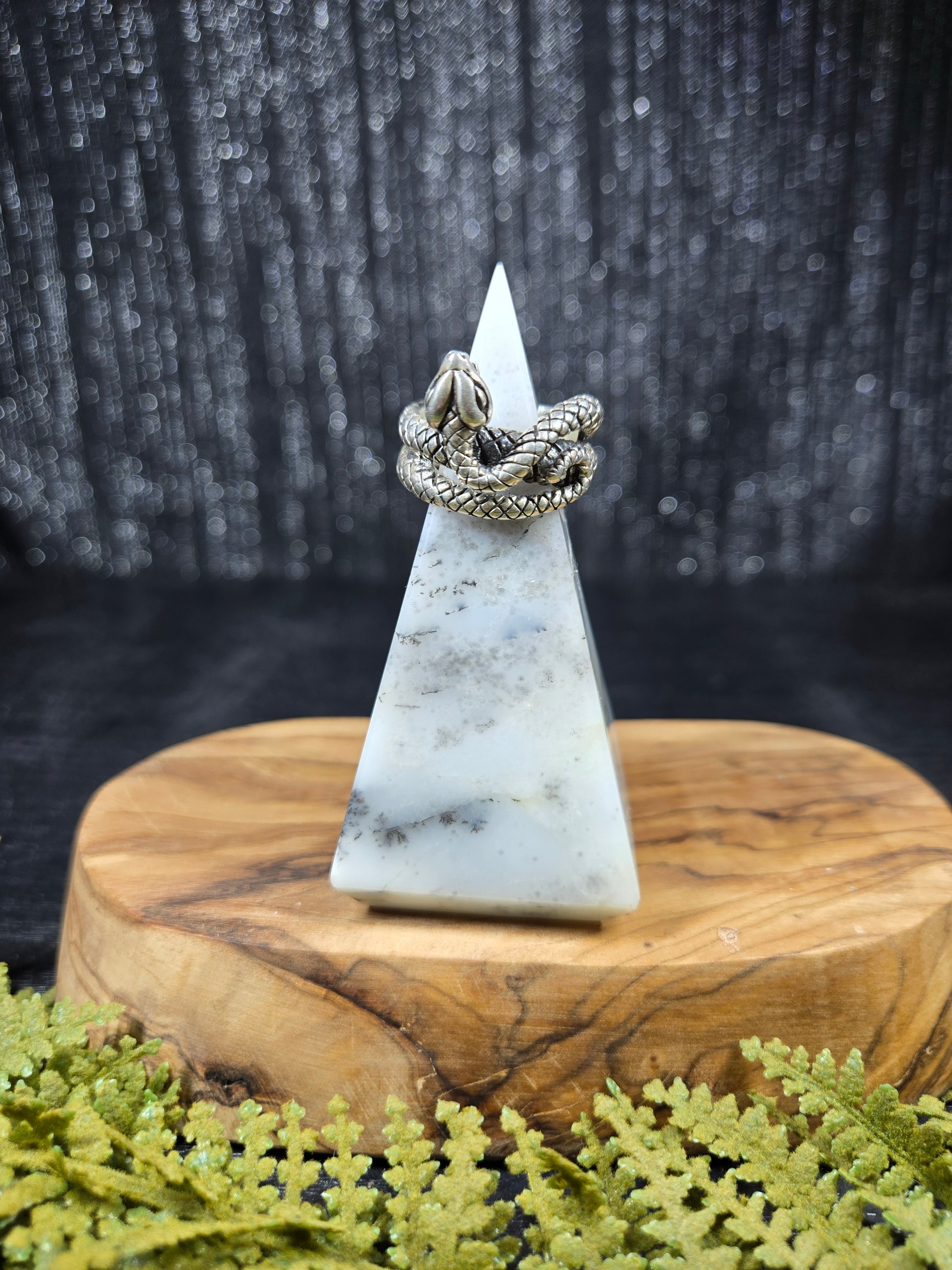 This ring is a stunning piece for those snake lovers out there. It is a snake with its mouth open wide, doubly wrapped around your finger. It is a gorgeous protection amulet, or just a stunning representation for our snake loving friends.