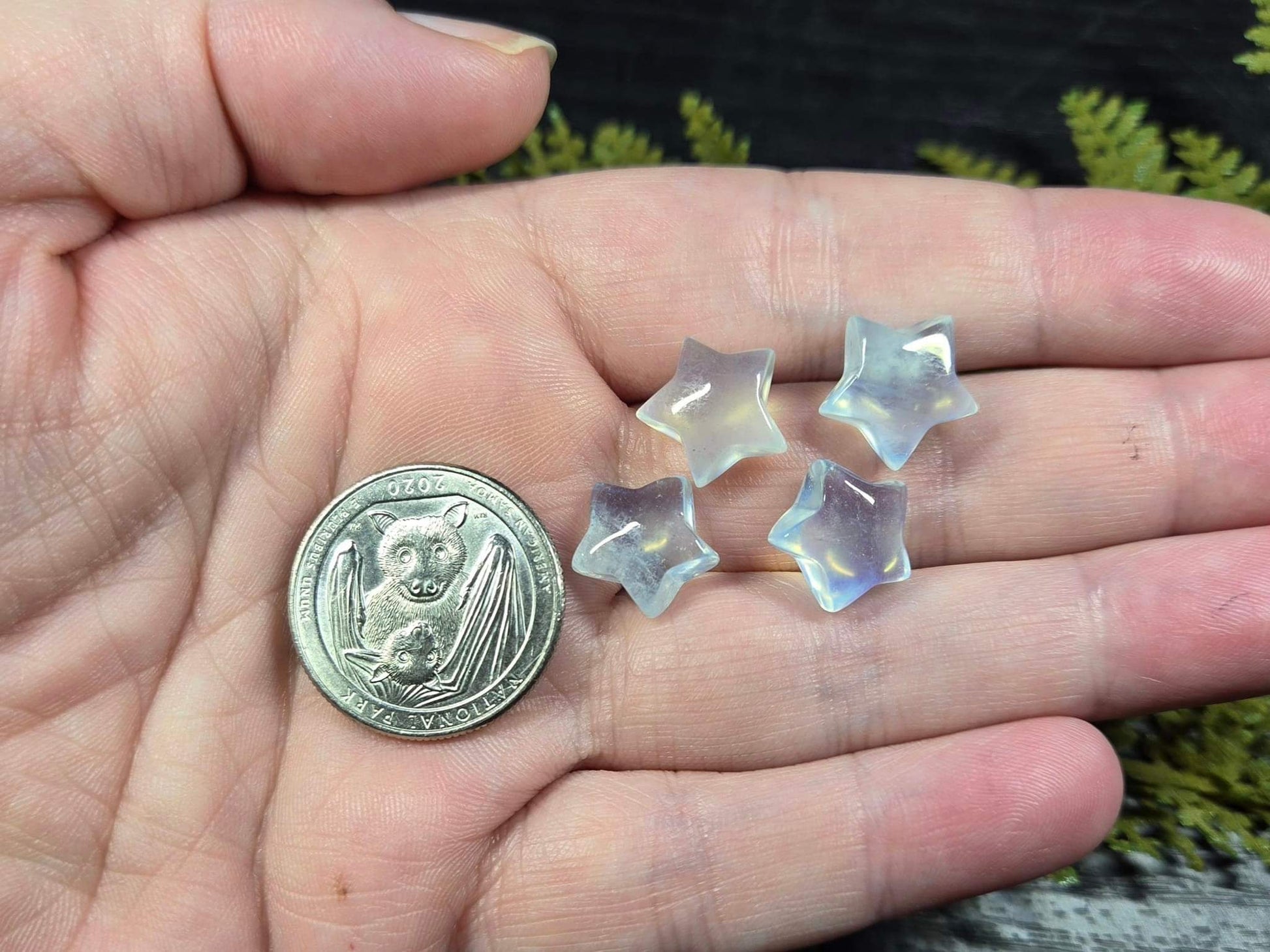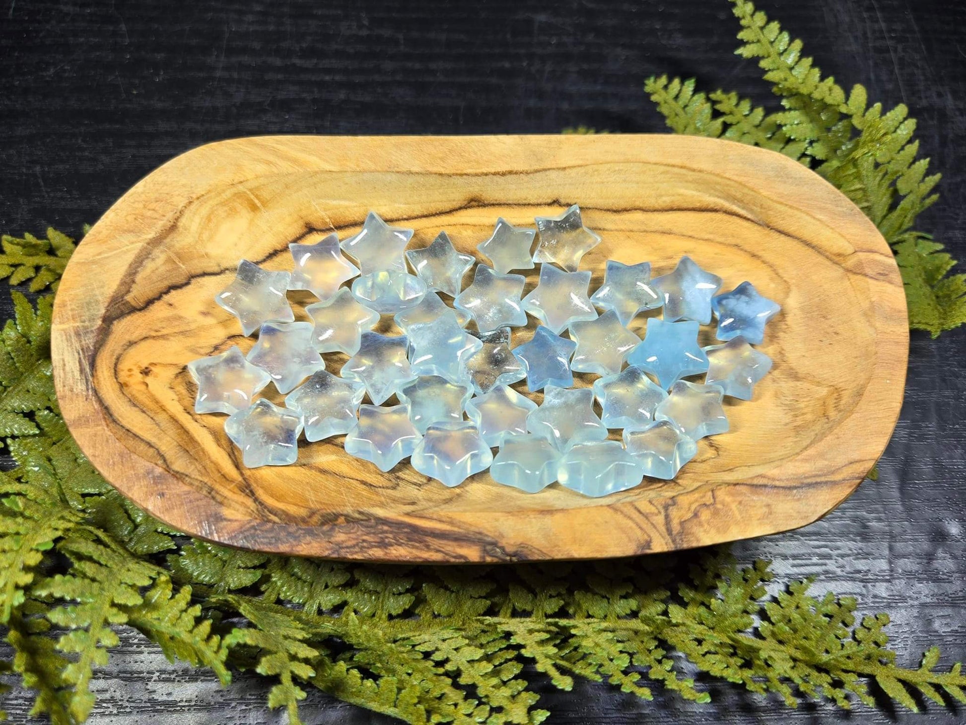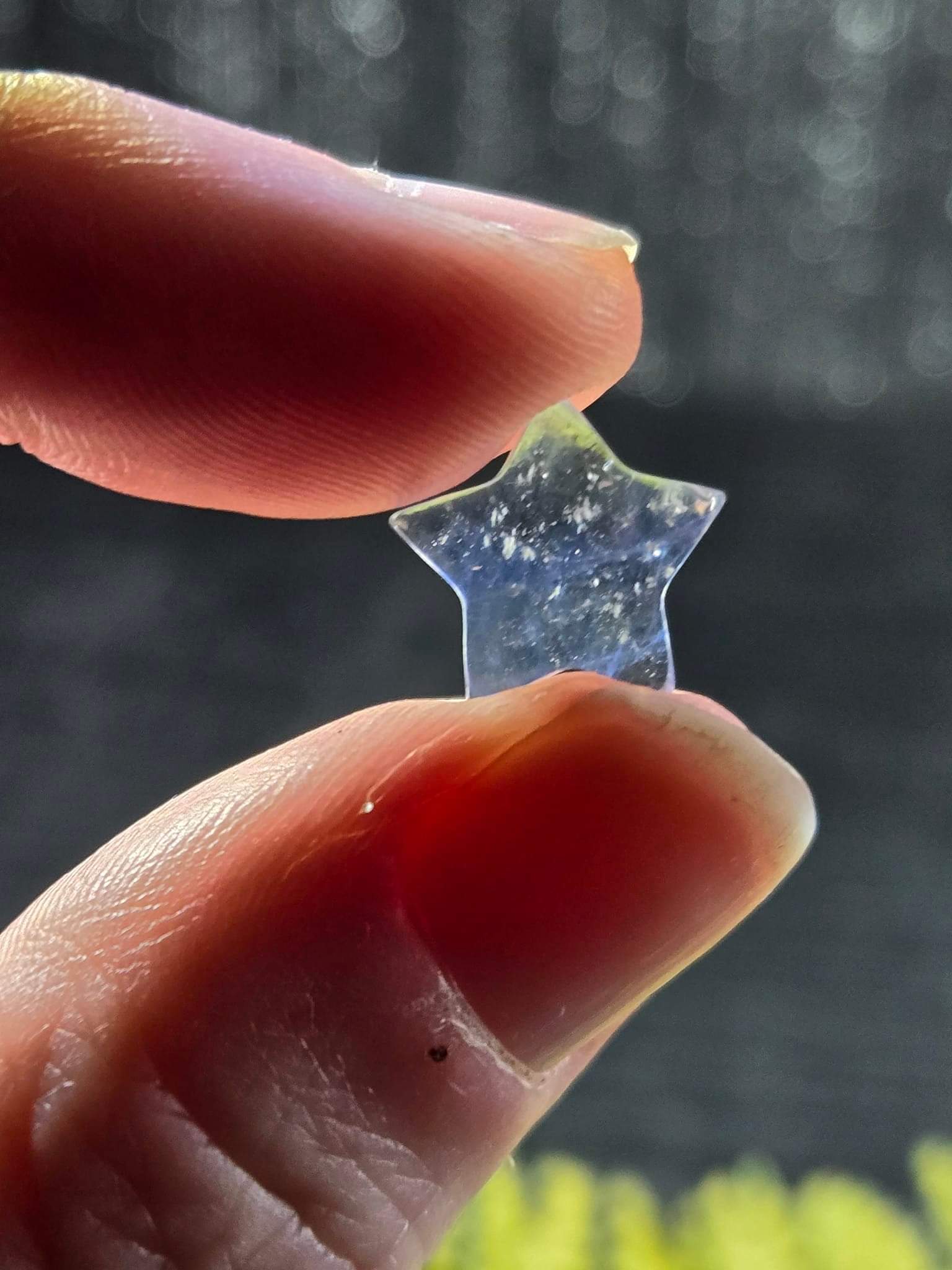 These tiny stars are made of stunning, high quality aquamarine with rainbows and varying shades of the blue this stone is known for. It is easily one of the most beautiful natural blues in nature! It's the stone of March birthdays.